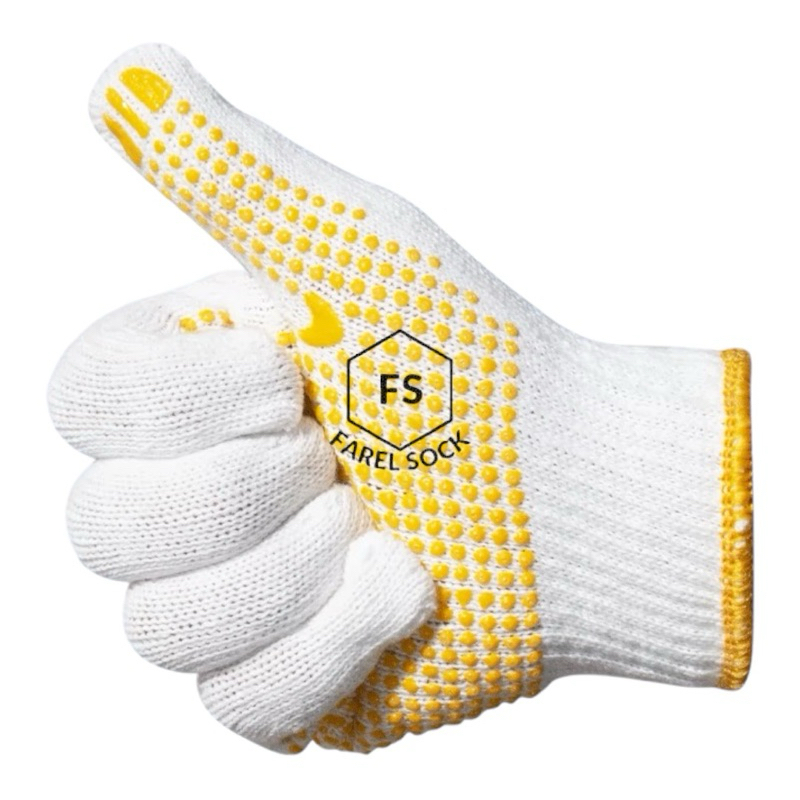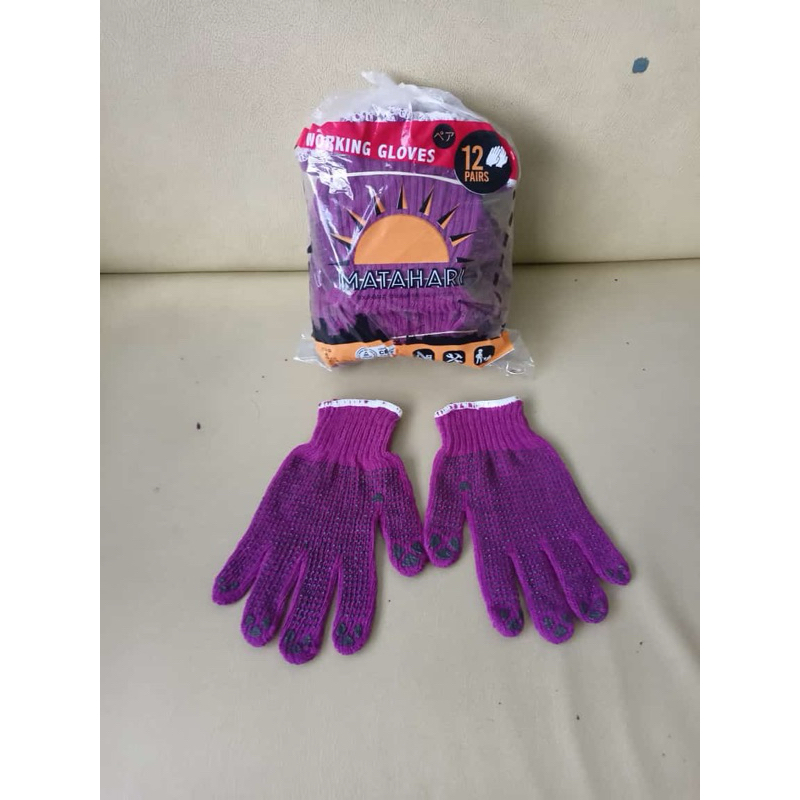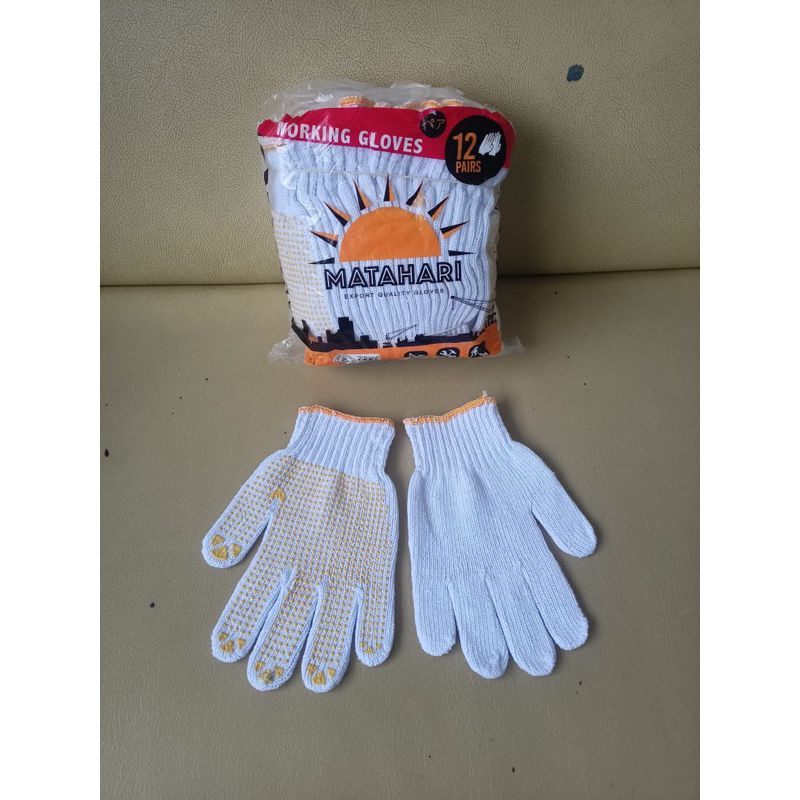 12 Pasang Sarung Tangan Kerja/Proyek Merk Matahari Hitam Bintik Grosir Murah Sarung tangan Kain benang