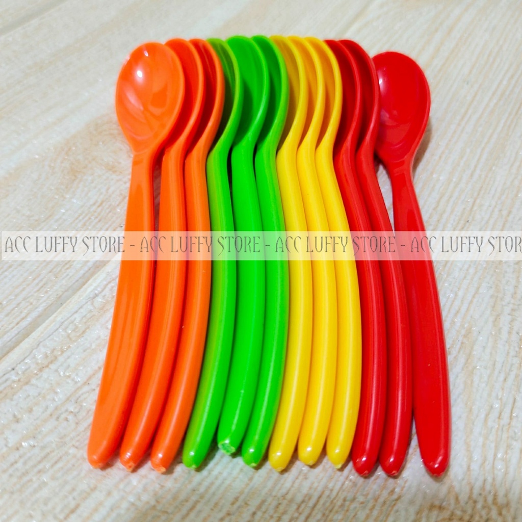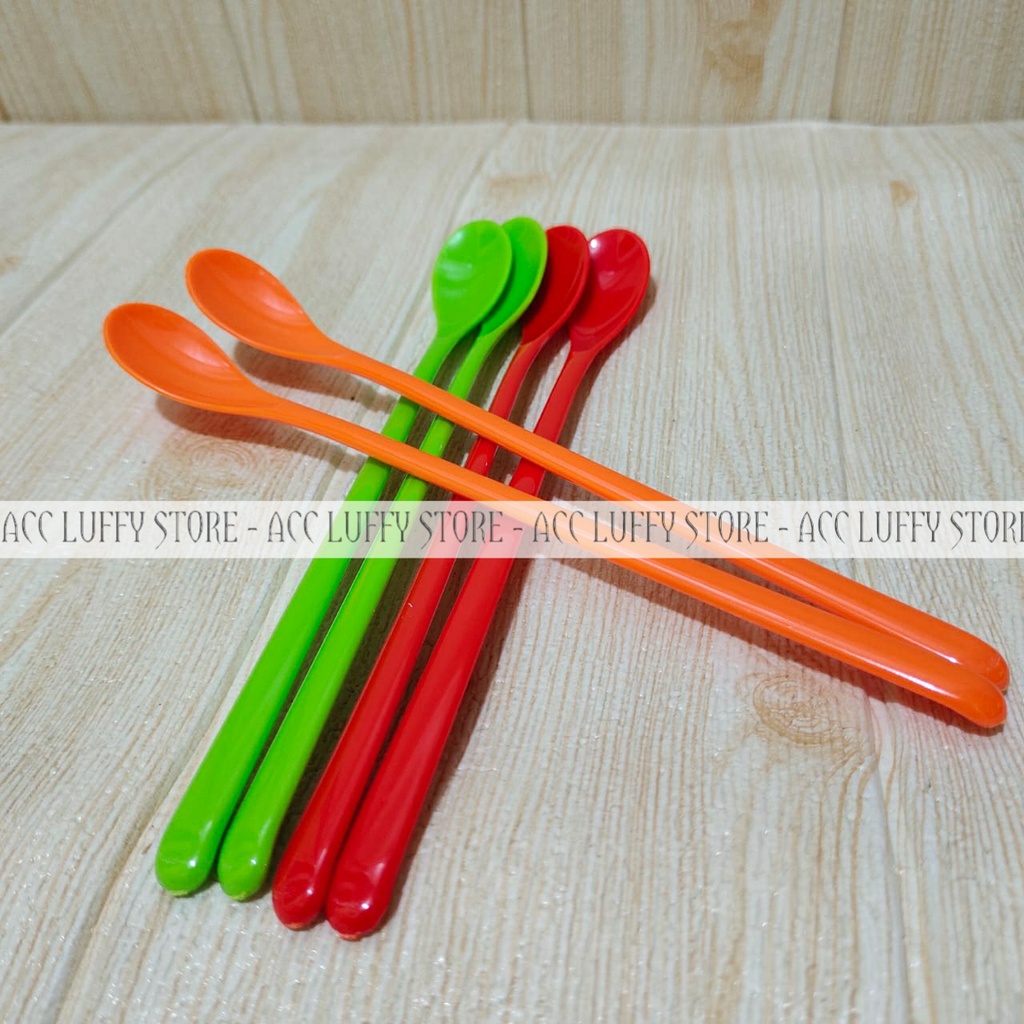 12 Pcs Sendok Panjang//sendok jus Murah//sendok cafe// sendok Sambal Semi Melamin Multiwarna