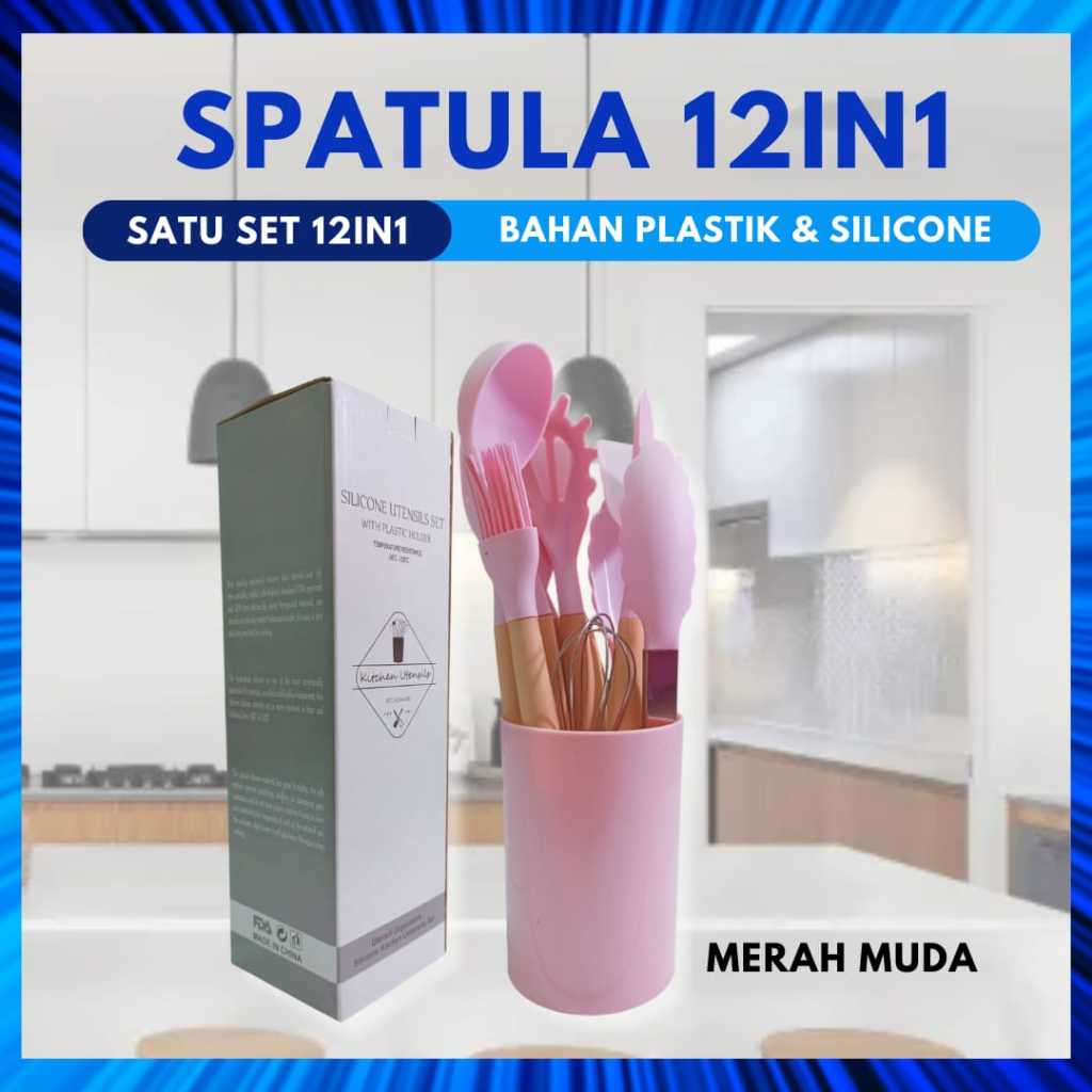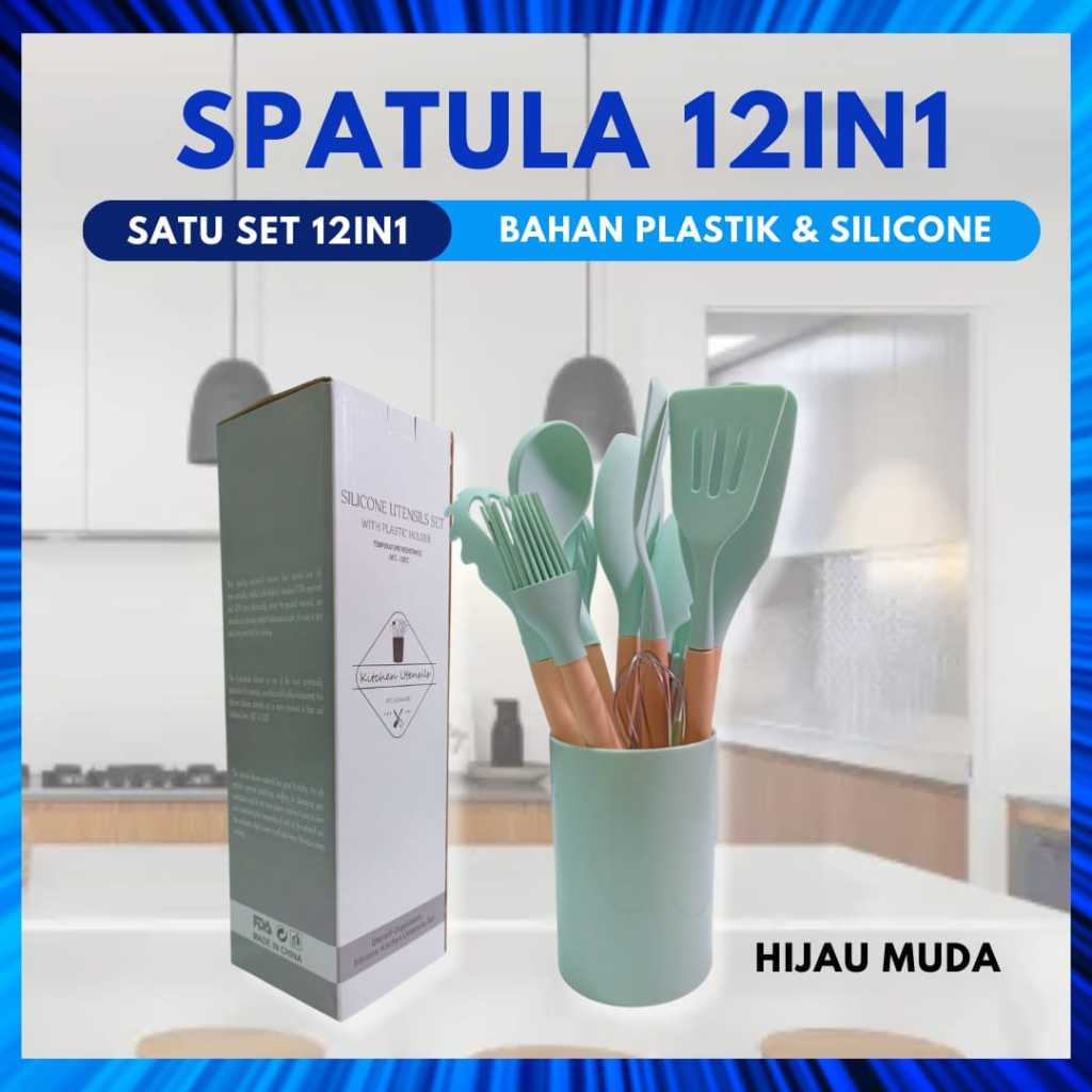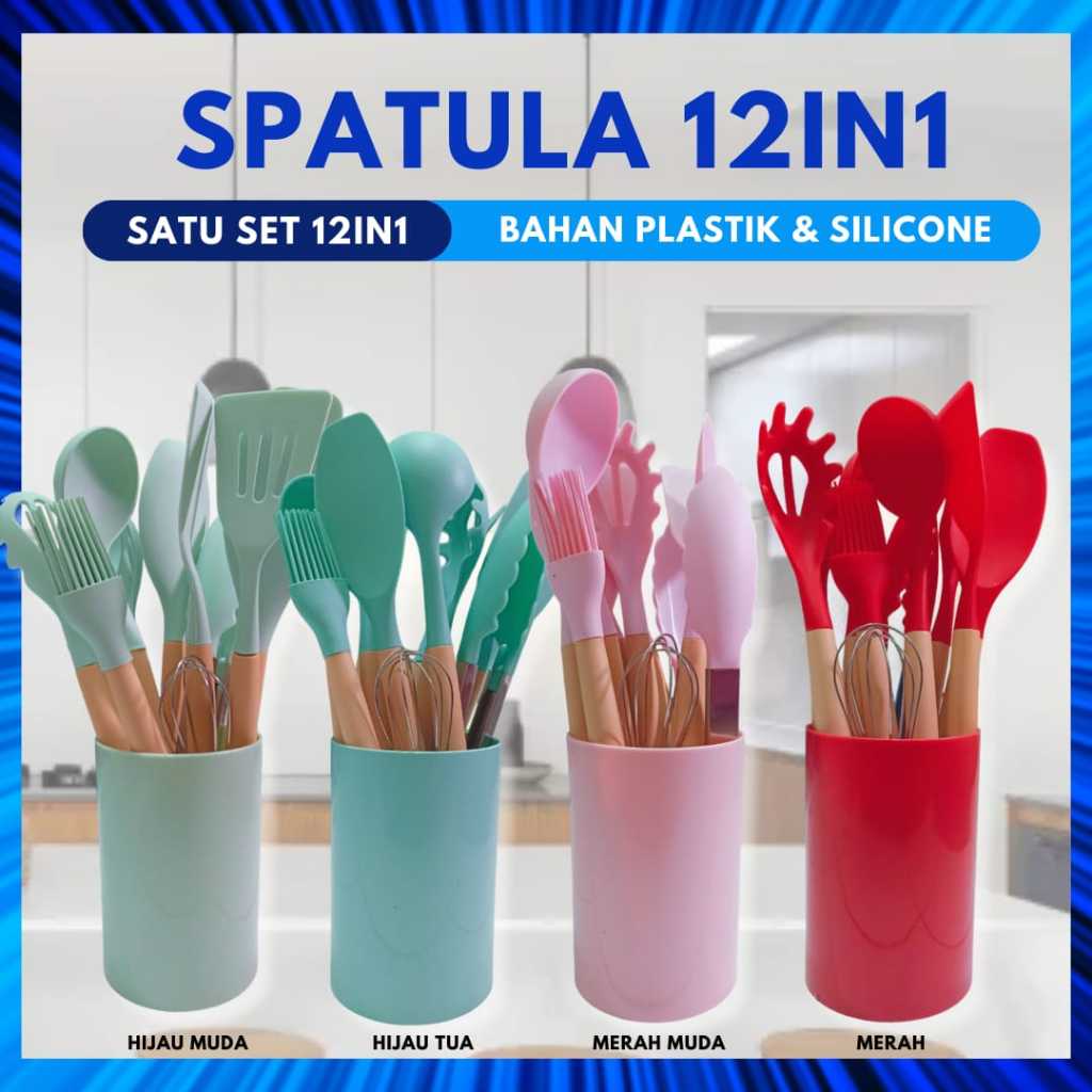 12 in 1 spatula silikon tahan panas utensil set 12 in 1 alat masak set sodet / Set Spatula 12 in 1 Silikon Anti Panas Peralatan Masak Sutil