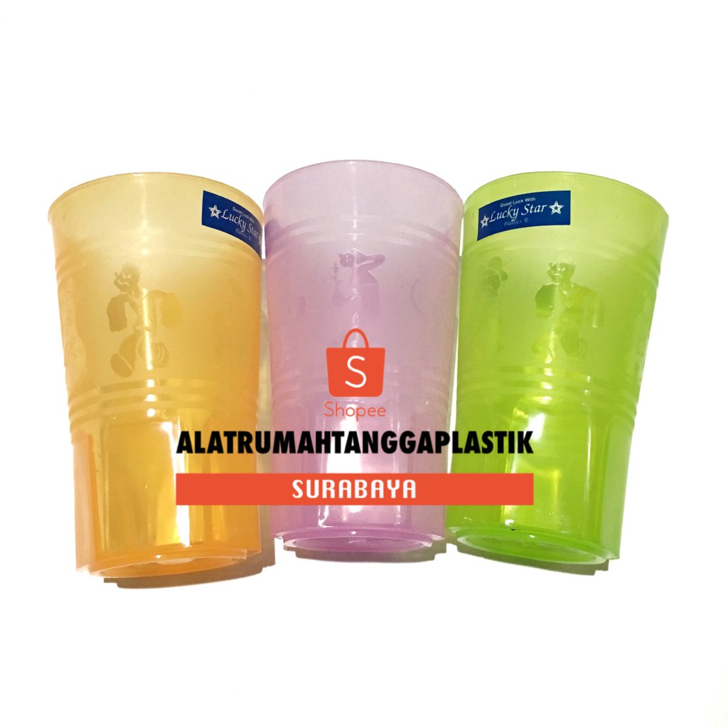 12 pcs Gelas Plastik Besar / Gelas Jumbo / Gelas Gambar / Gelas Souvenir / Gelas Lion Star / Gelas Popeye