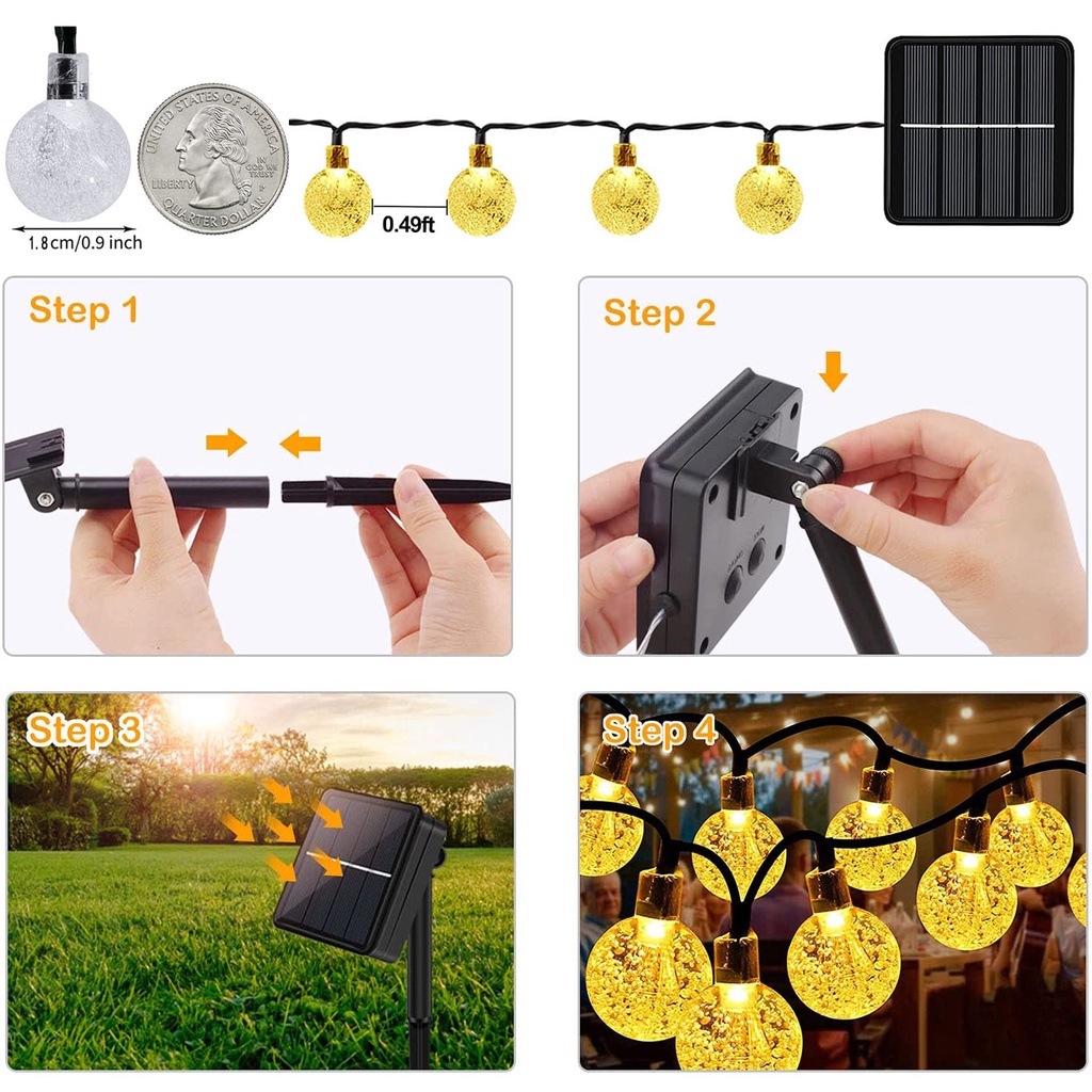 12M/100LED Lampu String Surya LED Lampu Peri Luar Ruangan Tahan Air IP65 Lampu String Surya Gelembung Bola Kristal String Lights Solar Lamp