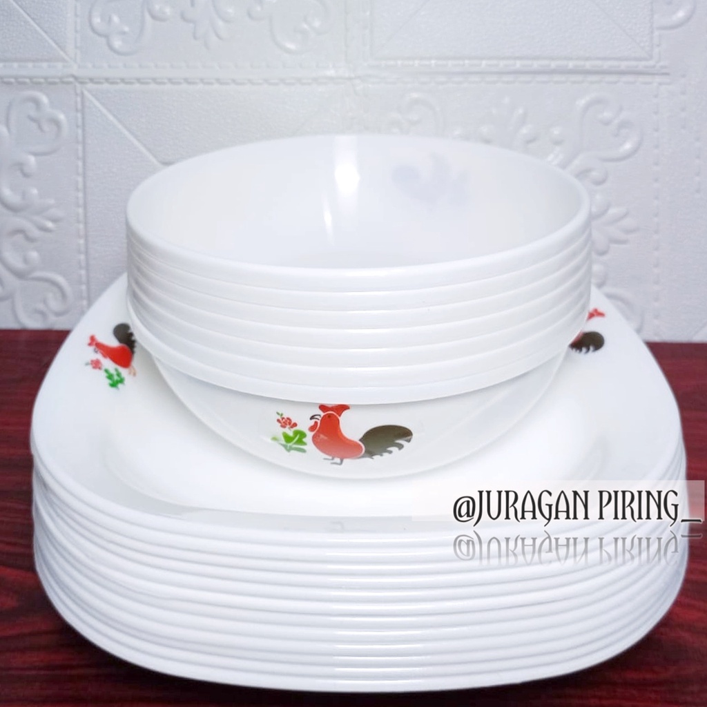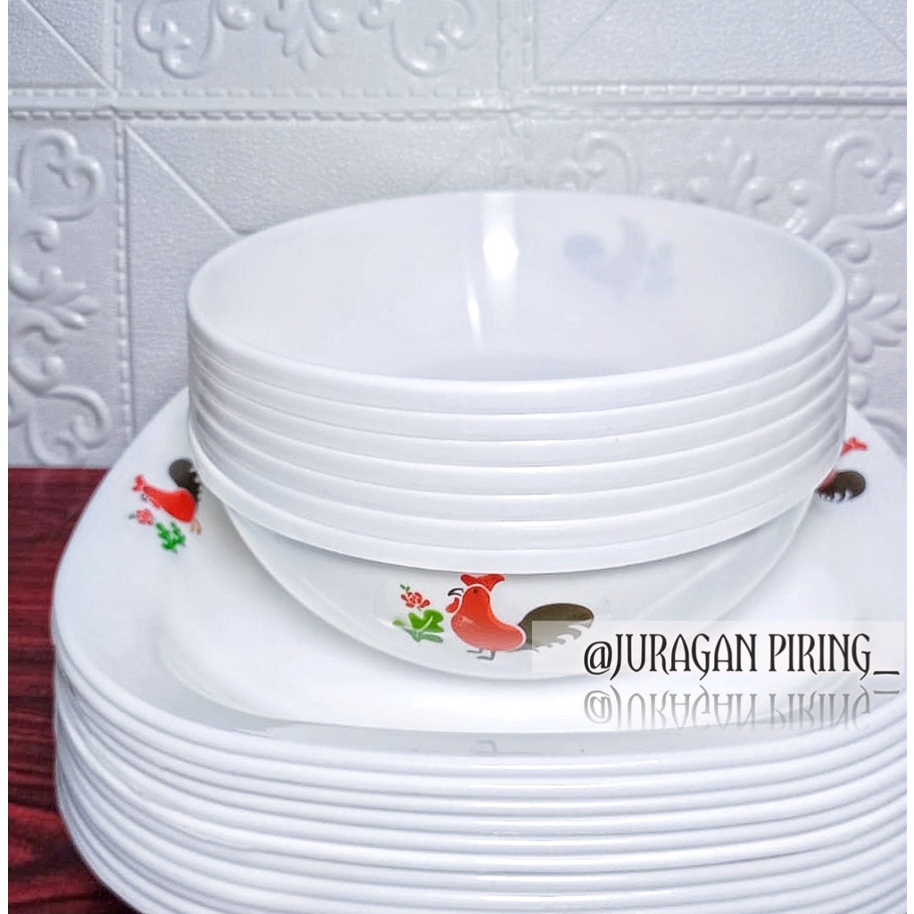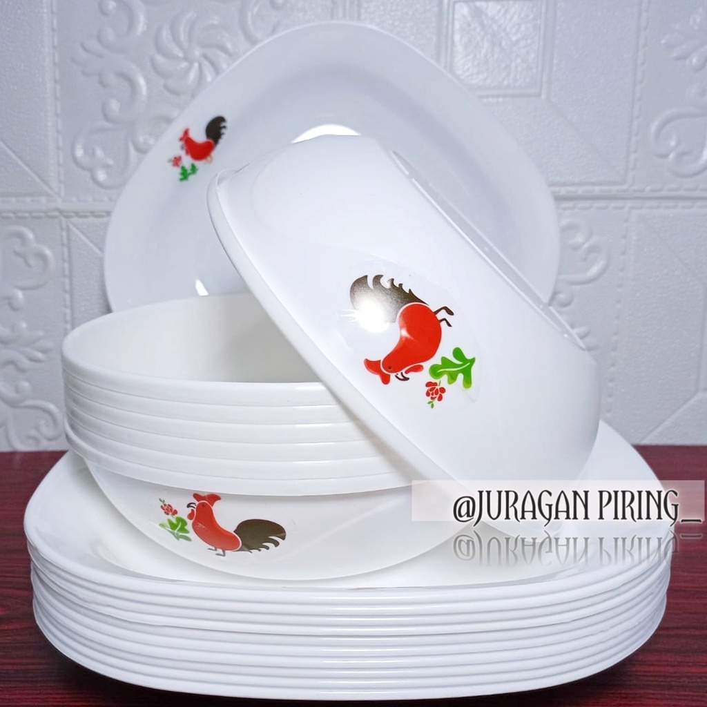 12PCS PAKET PERALATAN MAKAN PIRING CAMPUR MANGKUK AYAM JAGO FODGRADE DAN SNI