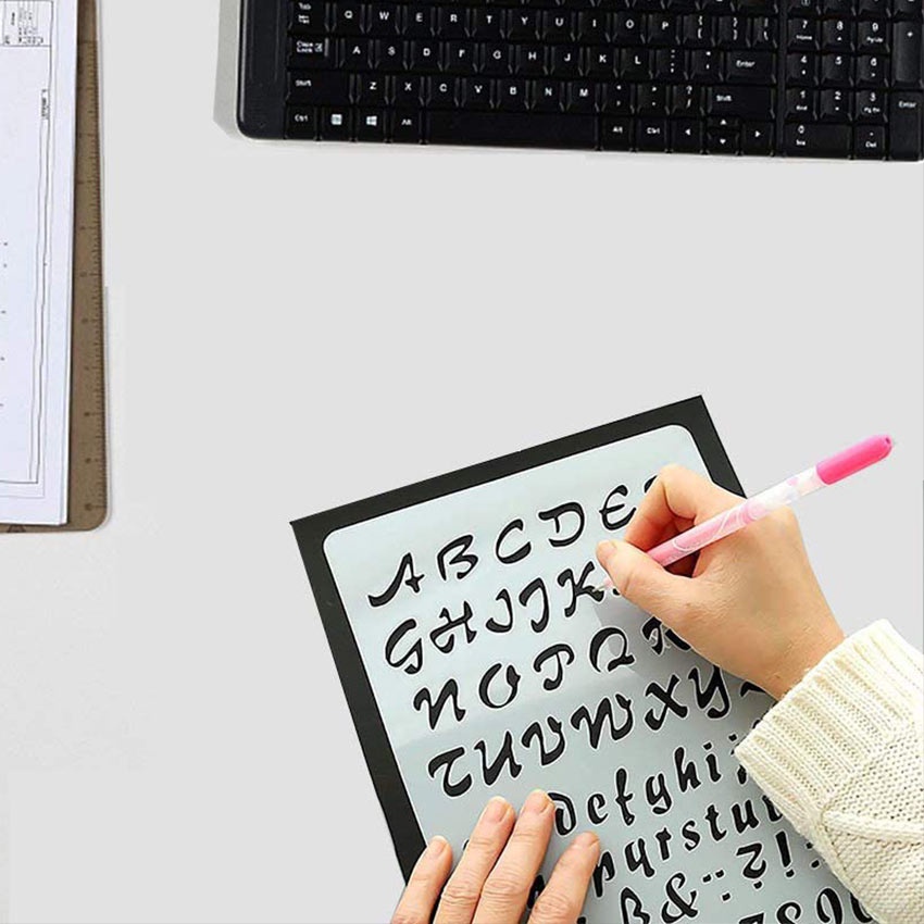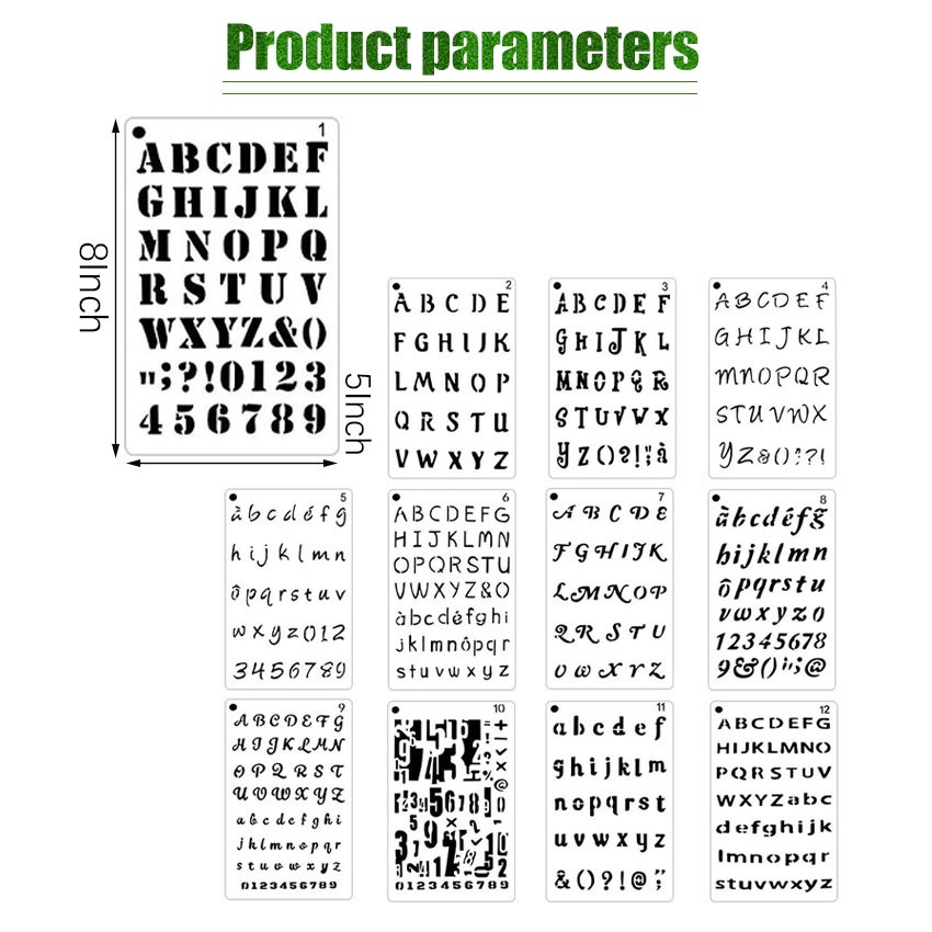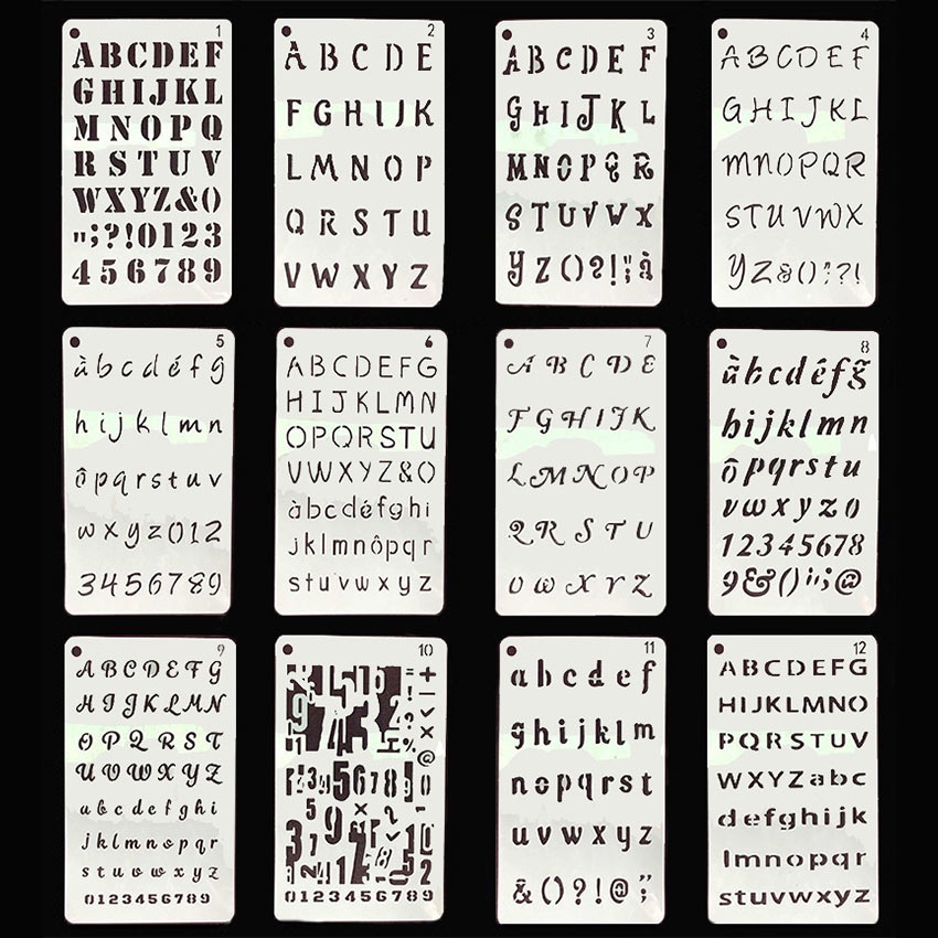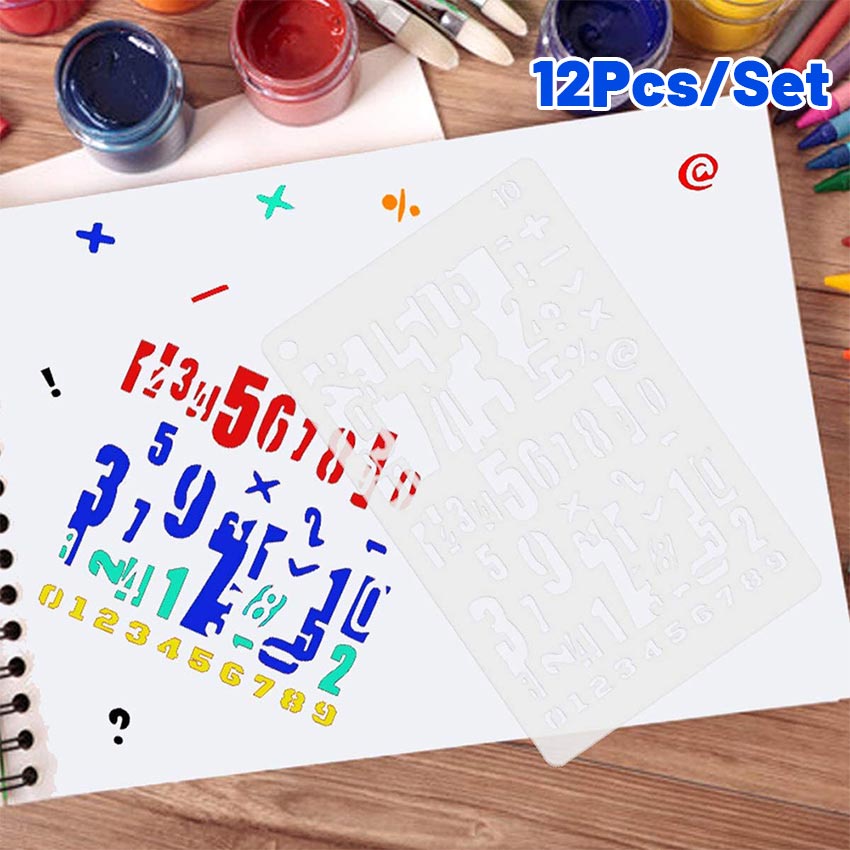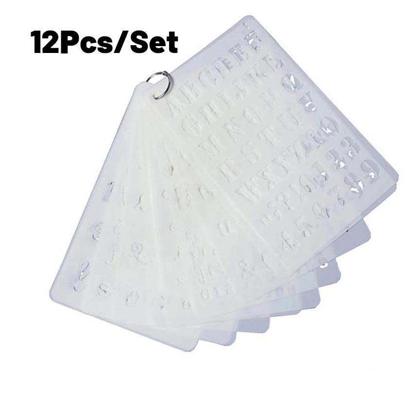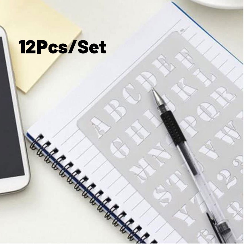 12Pcs/Set Penggaris Huruf & Angka Templates - Penggaris Sablon ABC - Lettering Stencil set - Penggaris Cetakan Huruf Angka Templates Sablon