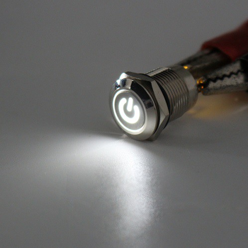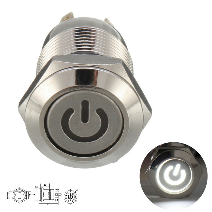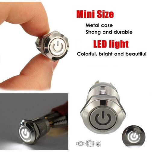 12mm Switch Stainless Push Button Momentary Horn 12v Lampu Simbol Power Led Putih Metal Saklar Tombol Klakson Push On