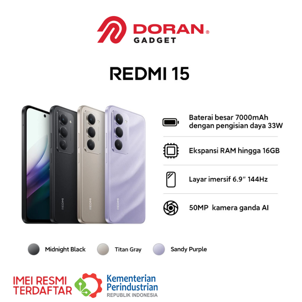 Xiaomi Redmi 15 8/128GB 8/256GB RAM 8GB ROM 128GB 256GB - Garansi Resmi 1 Tahun
