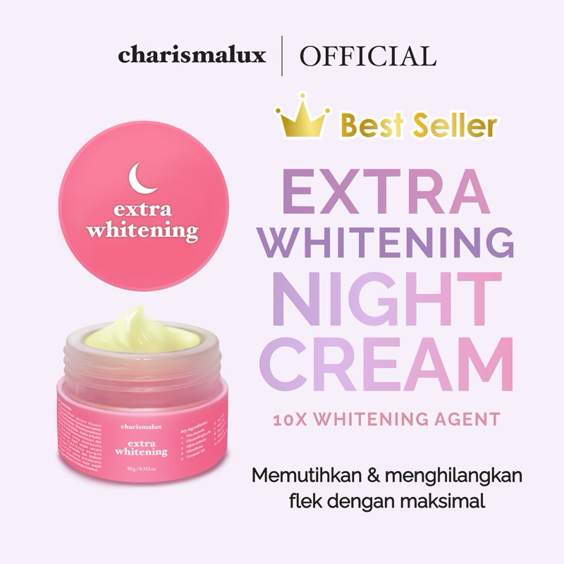 CHARISMALUX EXTRA WHITENING NIGHT CREAM - Cream Pemutih Wajah - Cream Malam Flek - Cream Malam Pelicin