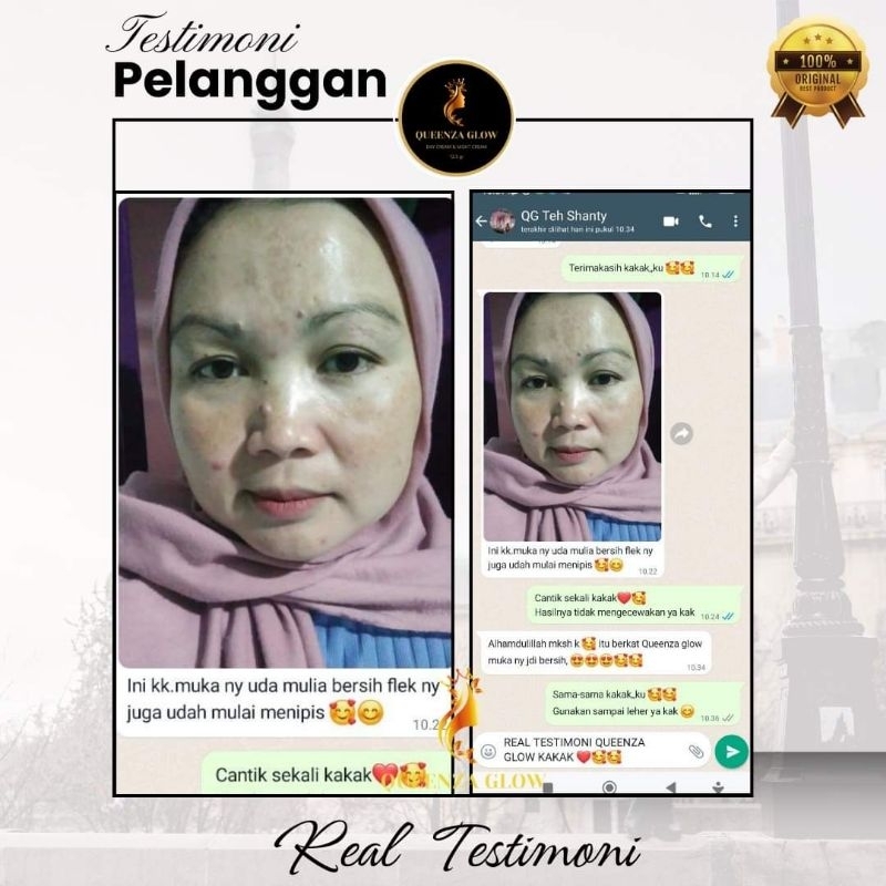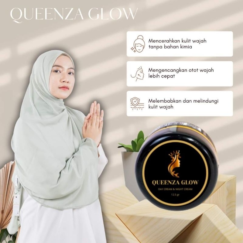 Queenza Glow Original Cream Siang Malam Fleg Flek hitam jerawat bekas jerawat pemutih kulit kusam Glowing
