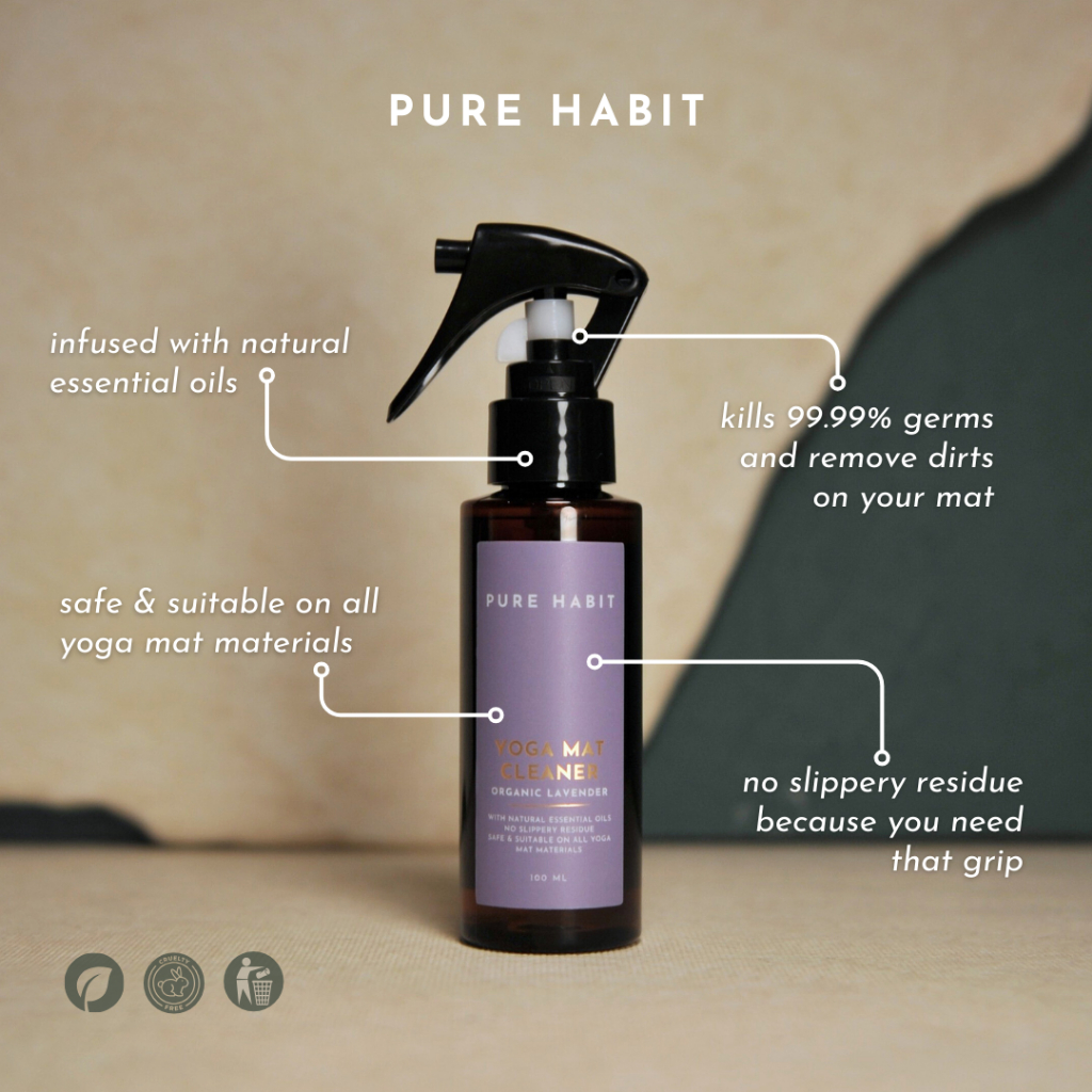 PURE HABIT Lavender Yoga Mat Spray Cleaner Natural Anti Bacterial 100ml