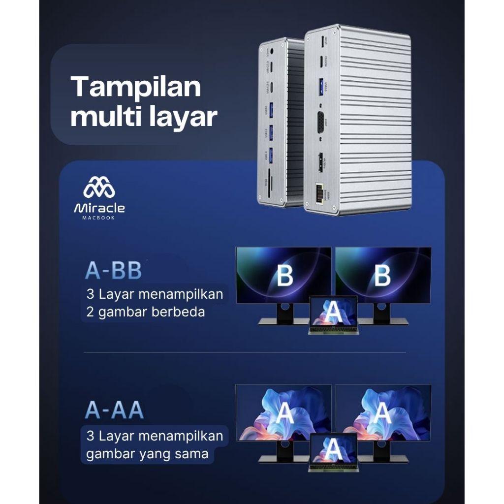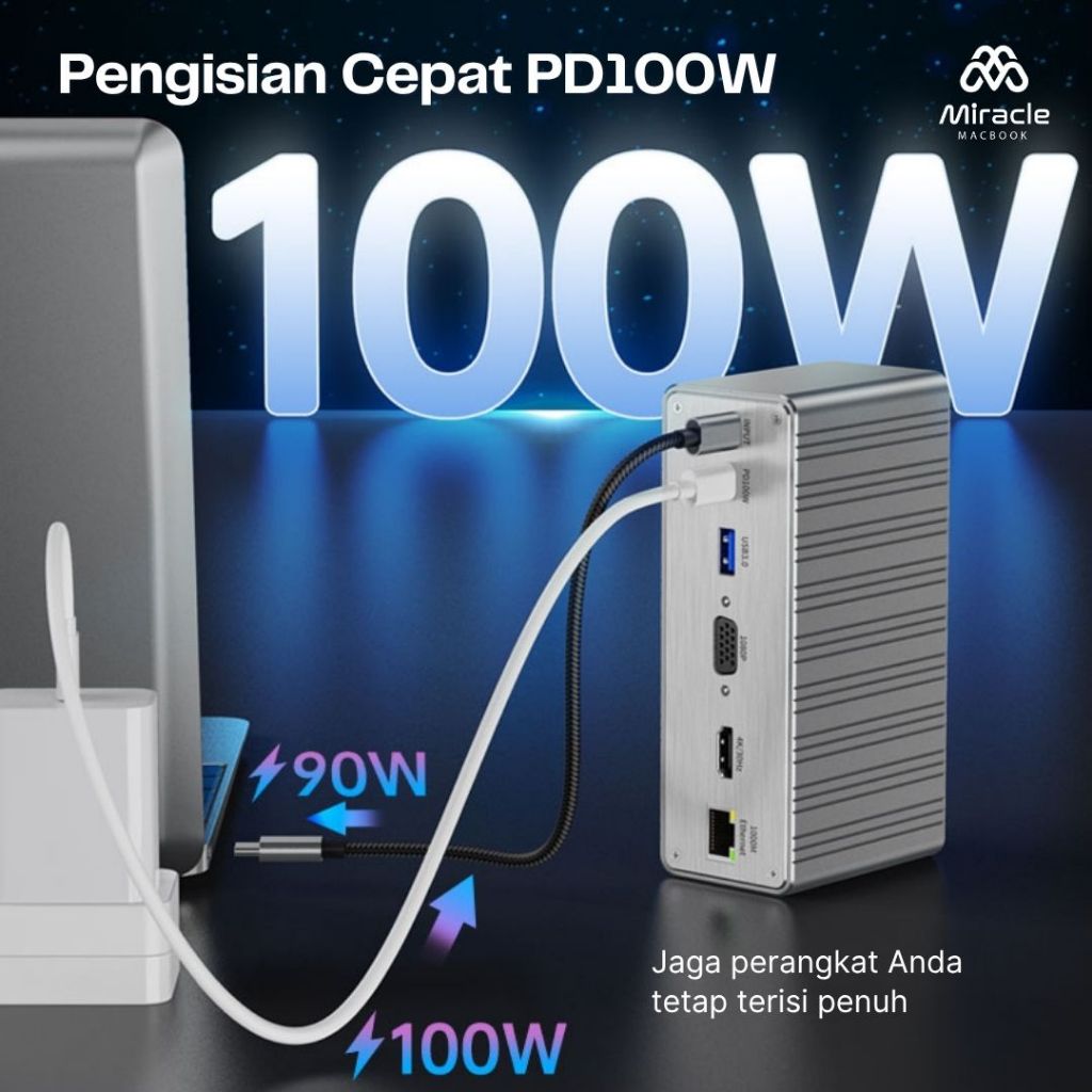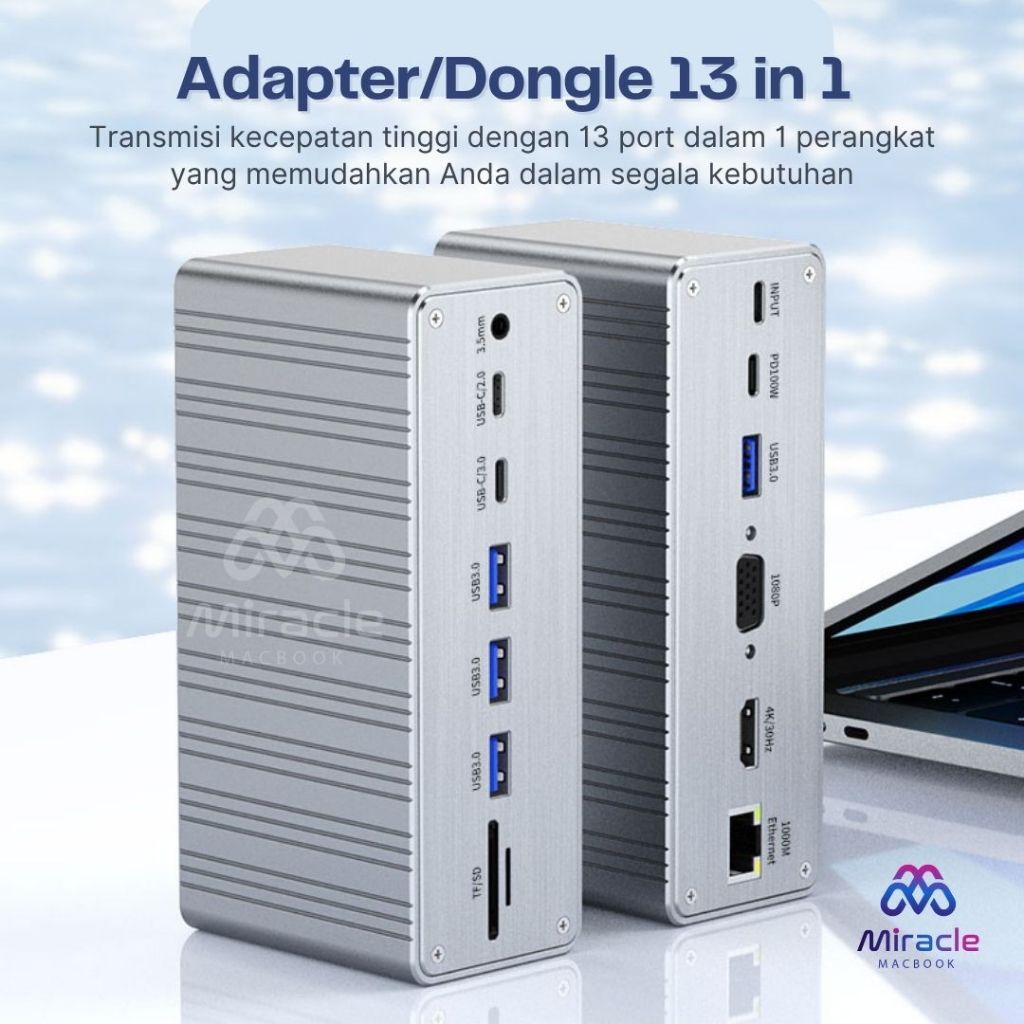 13 in 1 USB C Docking Station | USB-C Hub HDMI VGA PD 100W LAN Audio Card Reader