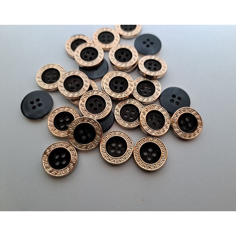 144 PCS KANCING HIAS BAJU GAMIS/MENSET MODEL KANCING ROSE BLACK DIAMETR 15 MM KANCING BAJU DATAR MODEL LIST ROSE BLACK