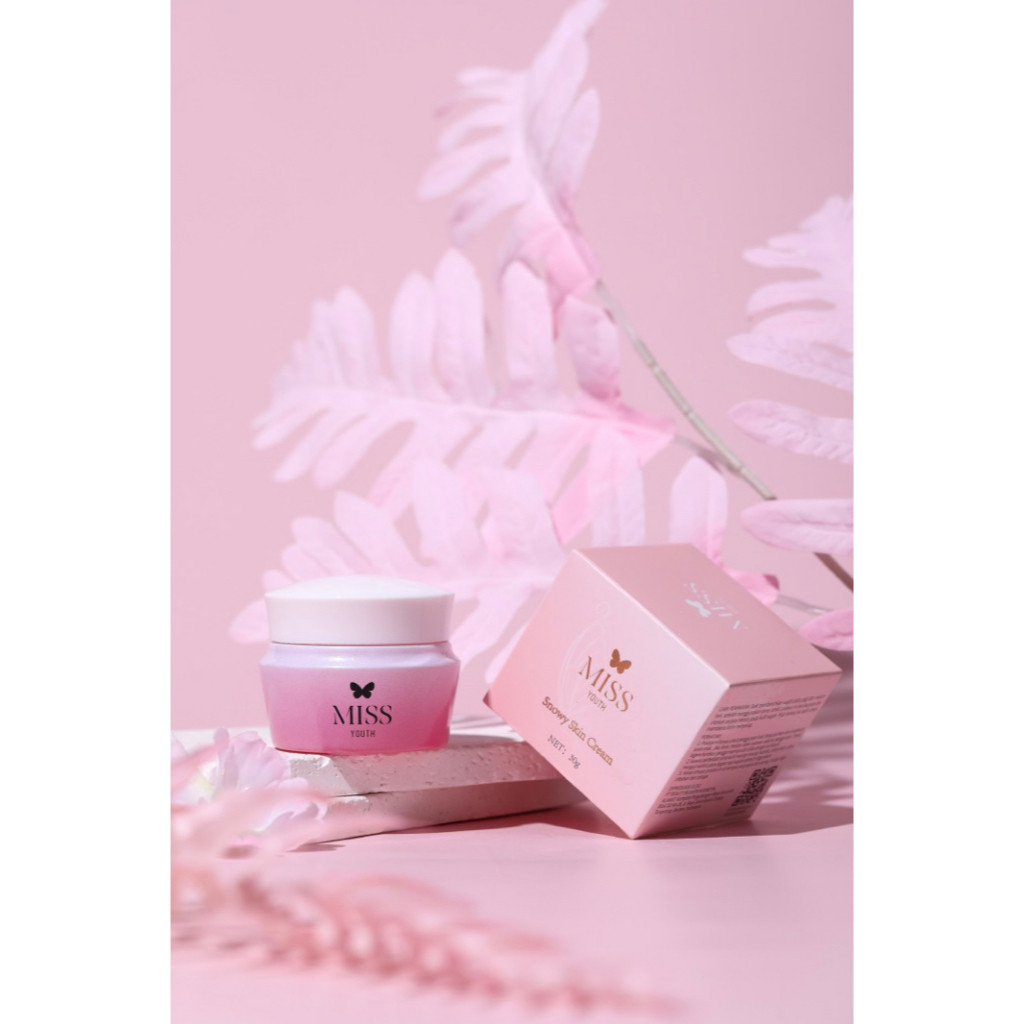 Miss Youth Snowy Skin Cream 30g - Pelembap Kulit dengan Ekstrak Tumbuhan & Formula Anti Inflamasi Wajah Extract Moisturizer Pelembab Creamy Oily Vitamin Whiten Face Spray Glycore 10 & Paket Hemat Krim moist acneno