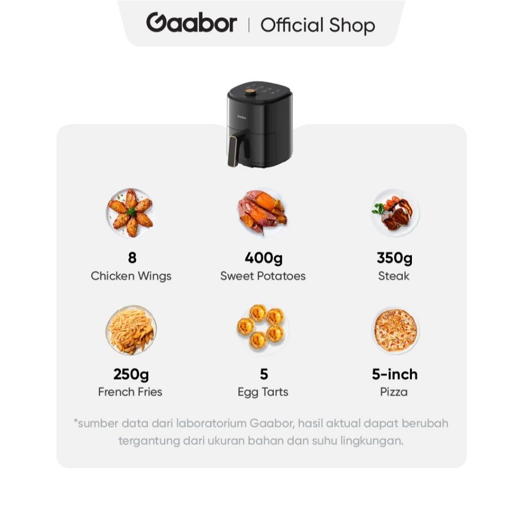 Gaabor Air Fryer 3.5L Mesin Penggorengan Tanpa Minyak Low Watt Multifungsi Serbaguna / AF35M Series