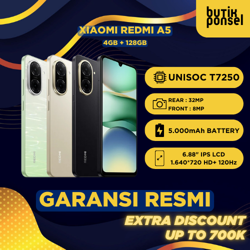 Xiaomi Redmi A5 (4+128) Kamera 32MP | Layar 6.88" | Baterai 5200mAh | Octa Core anti lemot [Official Store]