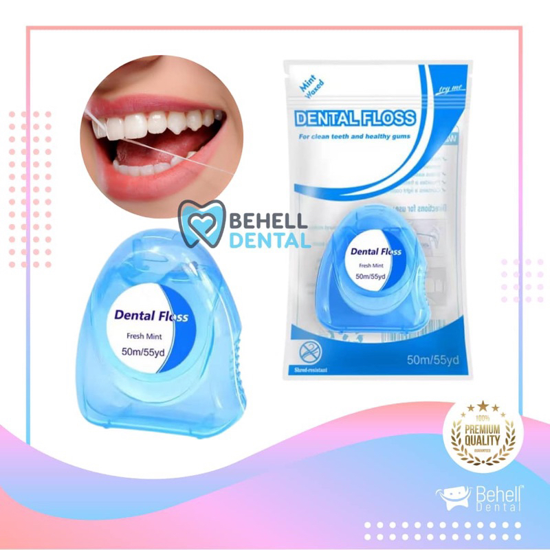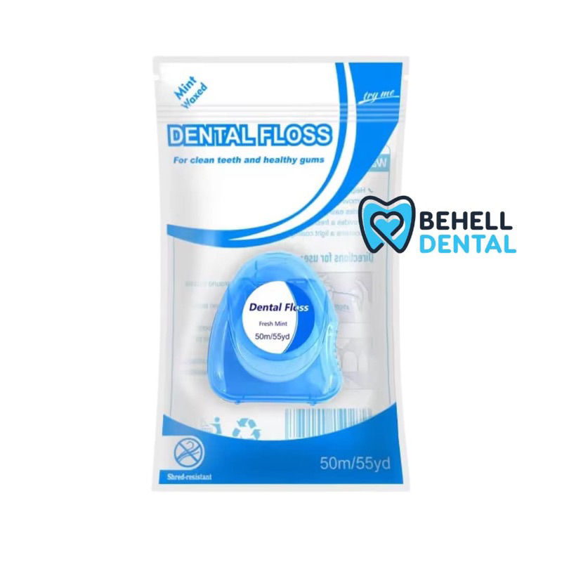 DENTAL FLOSS ESSENTIAL GULUNGAN 50m 50 meter MINT FRESH UP POUCH . BENANG GIGI ESENTIAL BOX FRESHUP . SIKAT SELA CELAH BEHEL ORTHO KAWAT ROLL - Penghilang Sisa Makanan Di Gusi . Anti bau mulut dan Pembersih plak Behelldental ORIGINAL