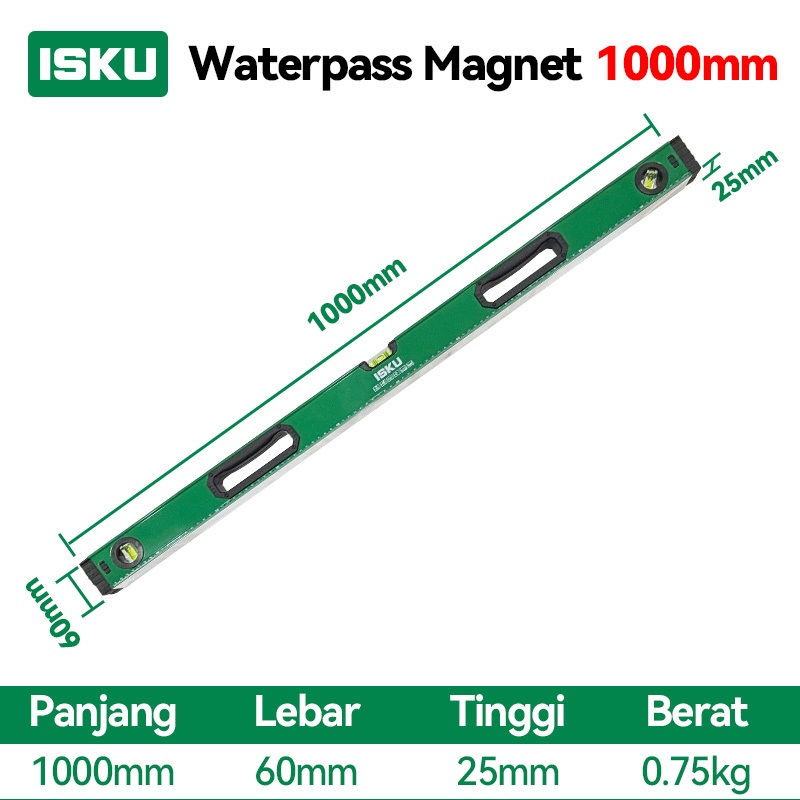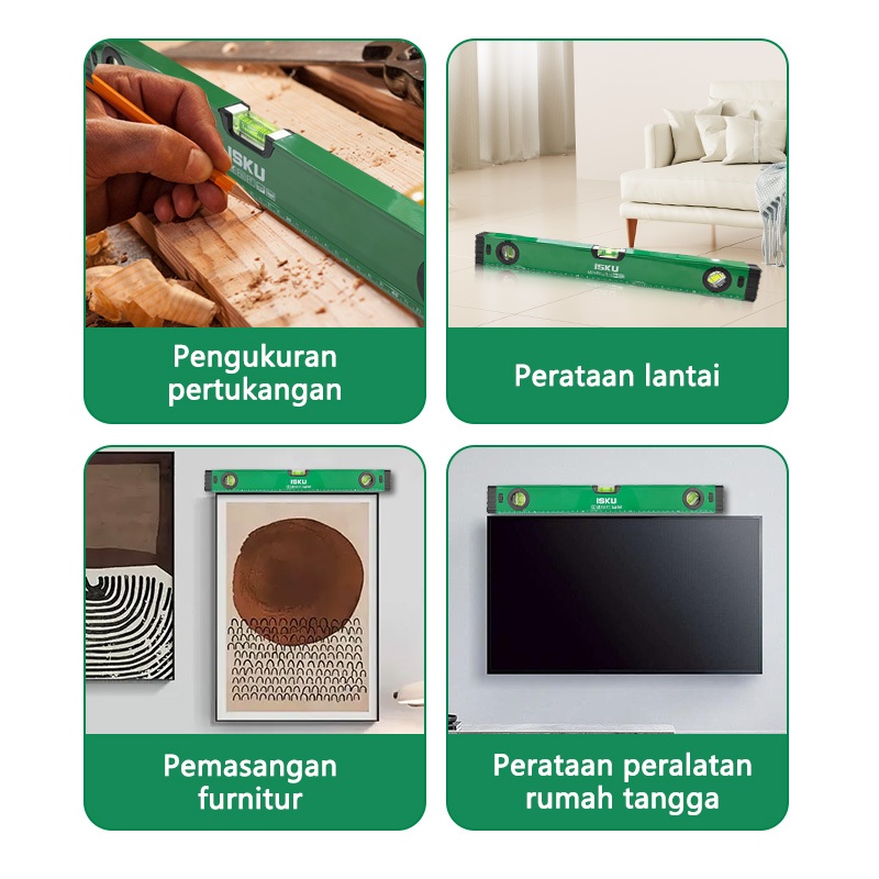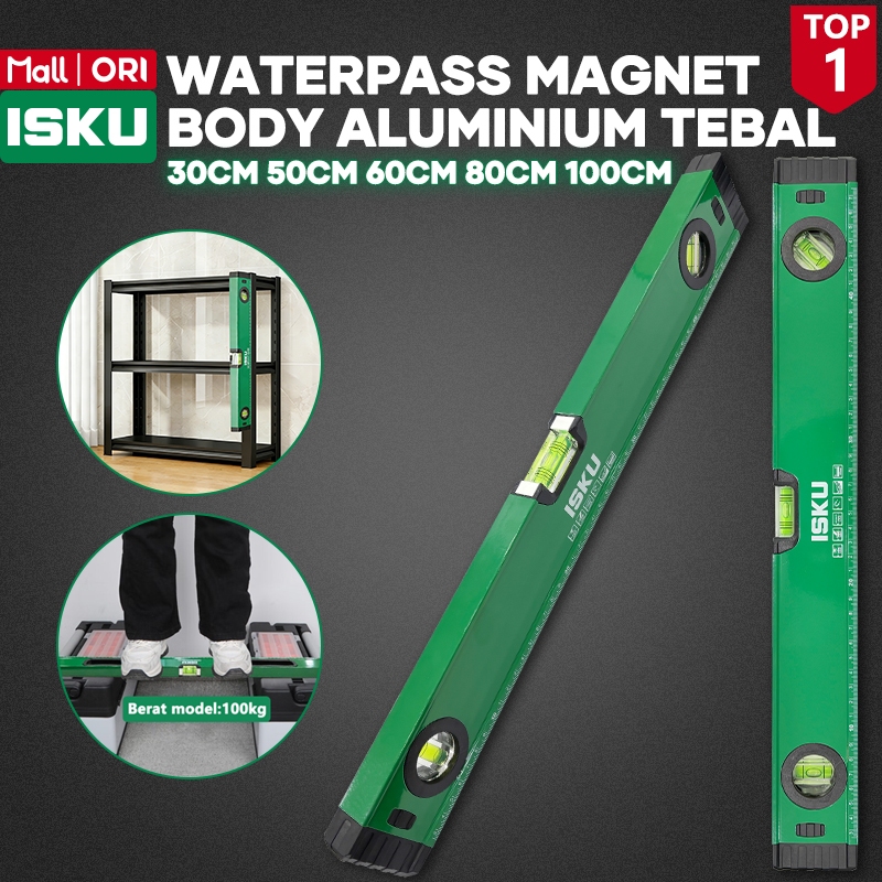 ISKU Waterpass Magnet Aluminium 30-100cm Spirit Level Akurat Alat Ukur Rata Horizontal Vertikal