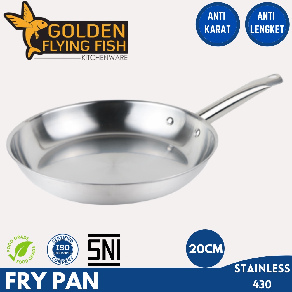 Fry Pan Stainless Steel 20 cm Golden Flying Fish Harden / Penggorengan Frypan Set Wajan Anti Lengket Anti Karat