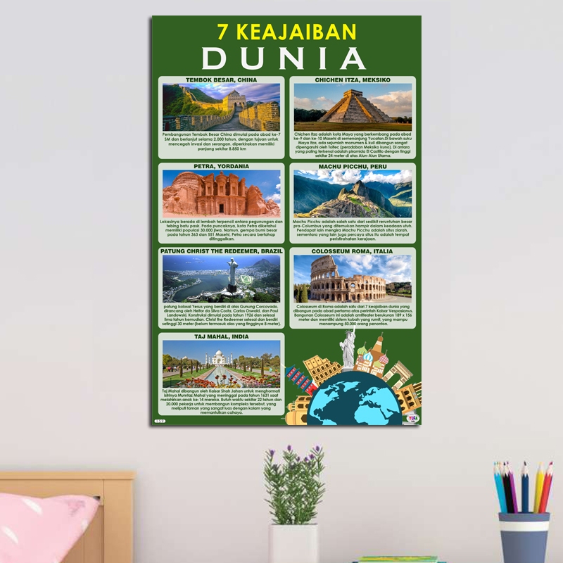 159 Poster 7 keajaiban dunia - Poster Edukasi Anak - Poster belajar anak - Poster wipe and clean - perlengkapan belajar anak - poster dinding murah - poster anak paud / TK - poster anak SD