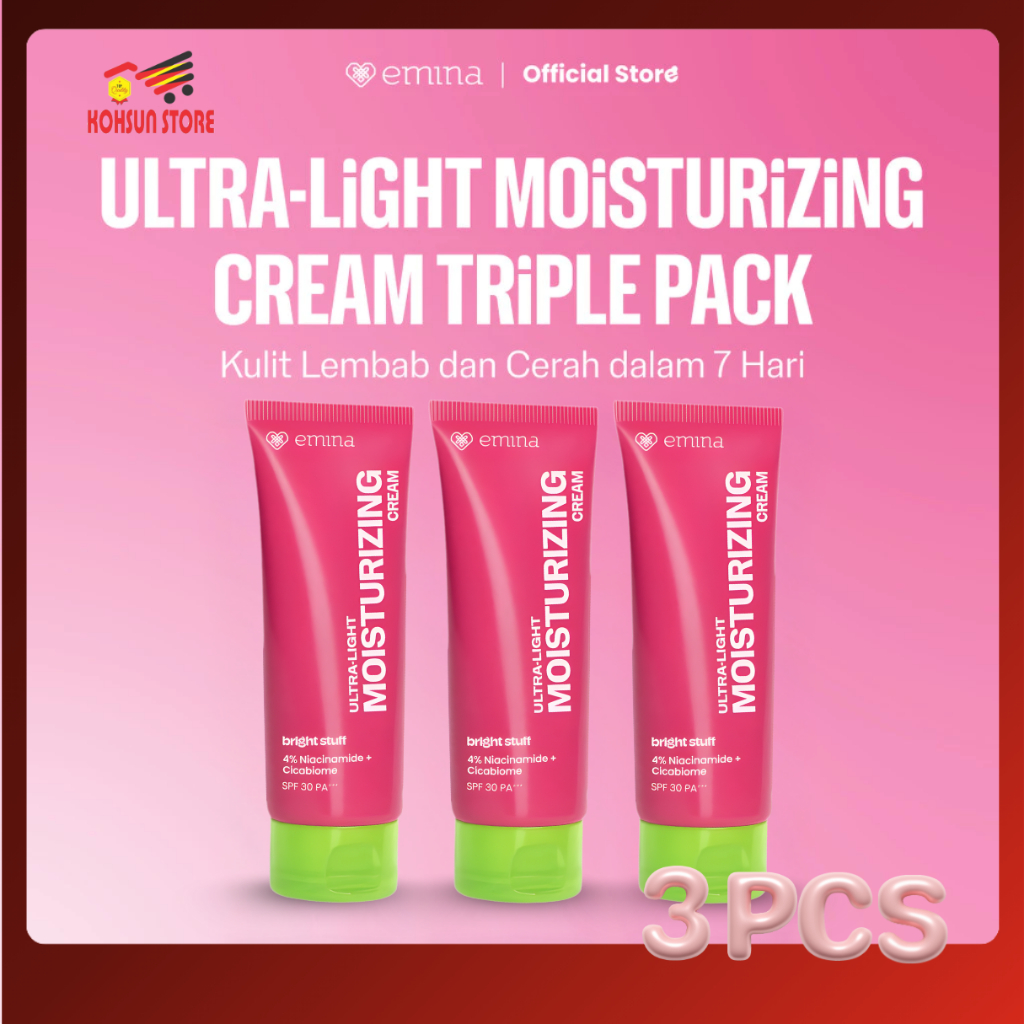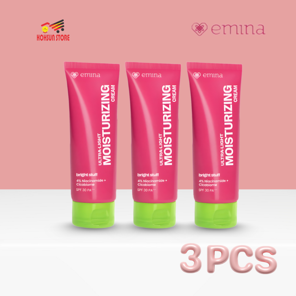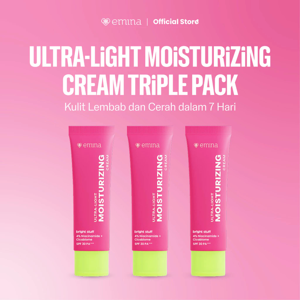 [3 pcs] NEW! Emina Bright Stuff Ultra-Light Moisturizing Cream 20 ml - Pelembab Wajah Mencerahkan, Mengandung SPF 30 PA+++, Melindungi dari Sinar UV, Melembapkan, Cepat Meresap, Cerah Instan, Menyamarkan Noda Hitam