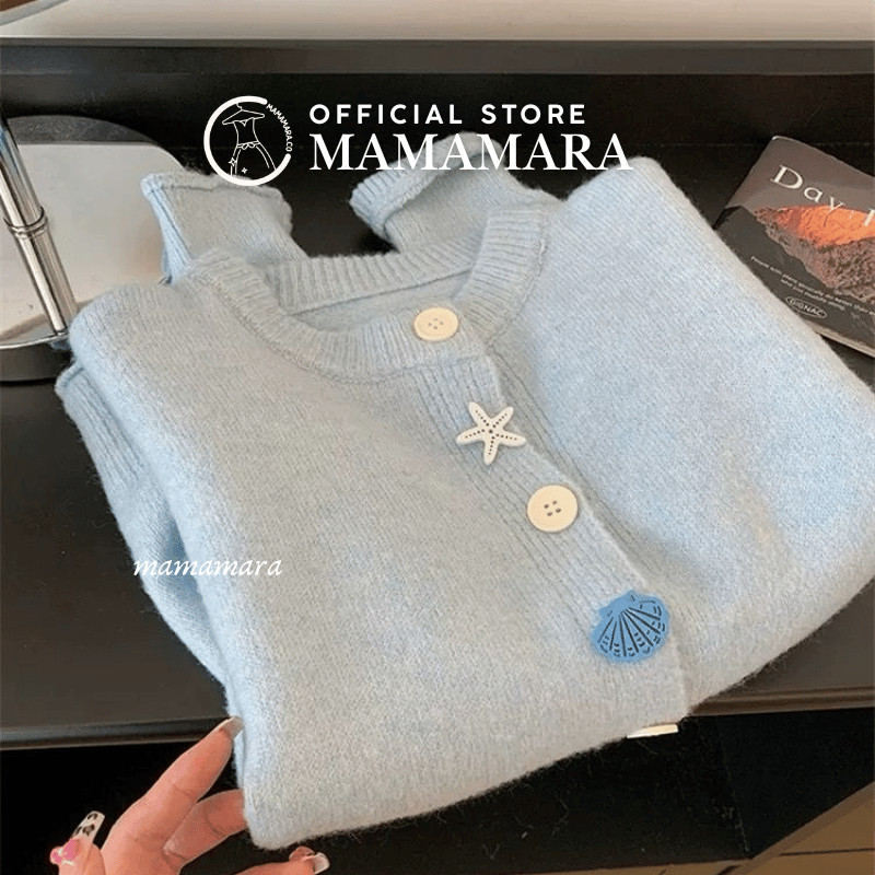 MAMAMARA - Cardigan Wol Rajut Keong Laut Coral Ocean Blue Biru Lembut Outer