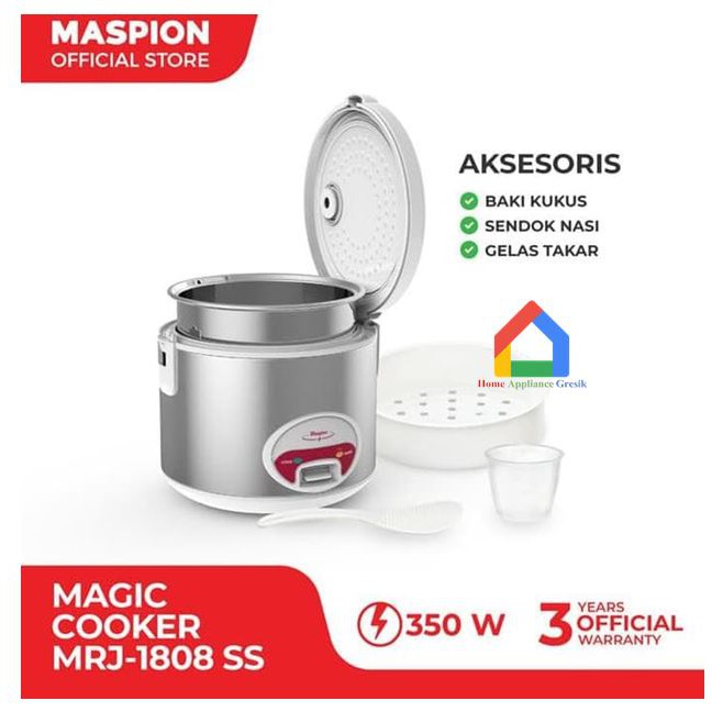 Magic Com Maspion MRJ 1808 SS / Rice Cooker Maspion MRJ808SS Putih (1,8 Liter)