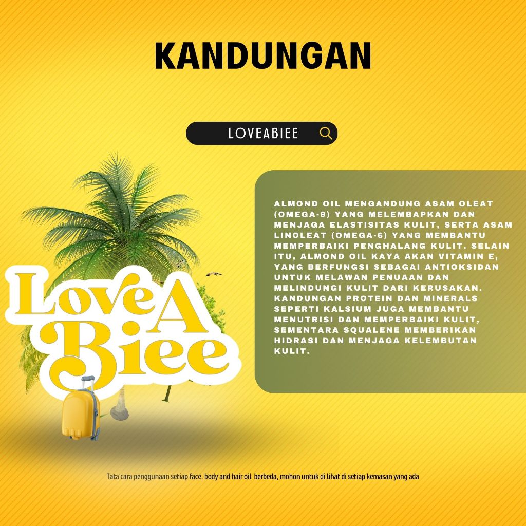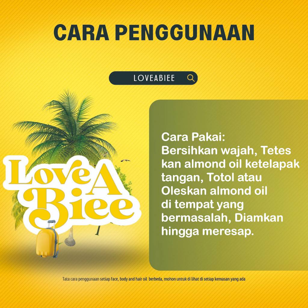Loveabiee Almond Oil 30ml Sebagai pelembab untuk kulit, rambut, dan bibir, Membuat kulit glowing, menghilangkan dark spots dan dark circles, Mengurangi radang, menenangkan kulit kemerahan