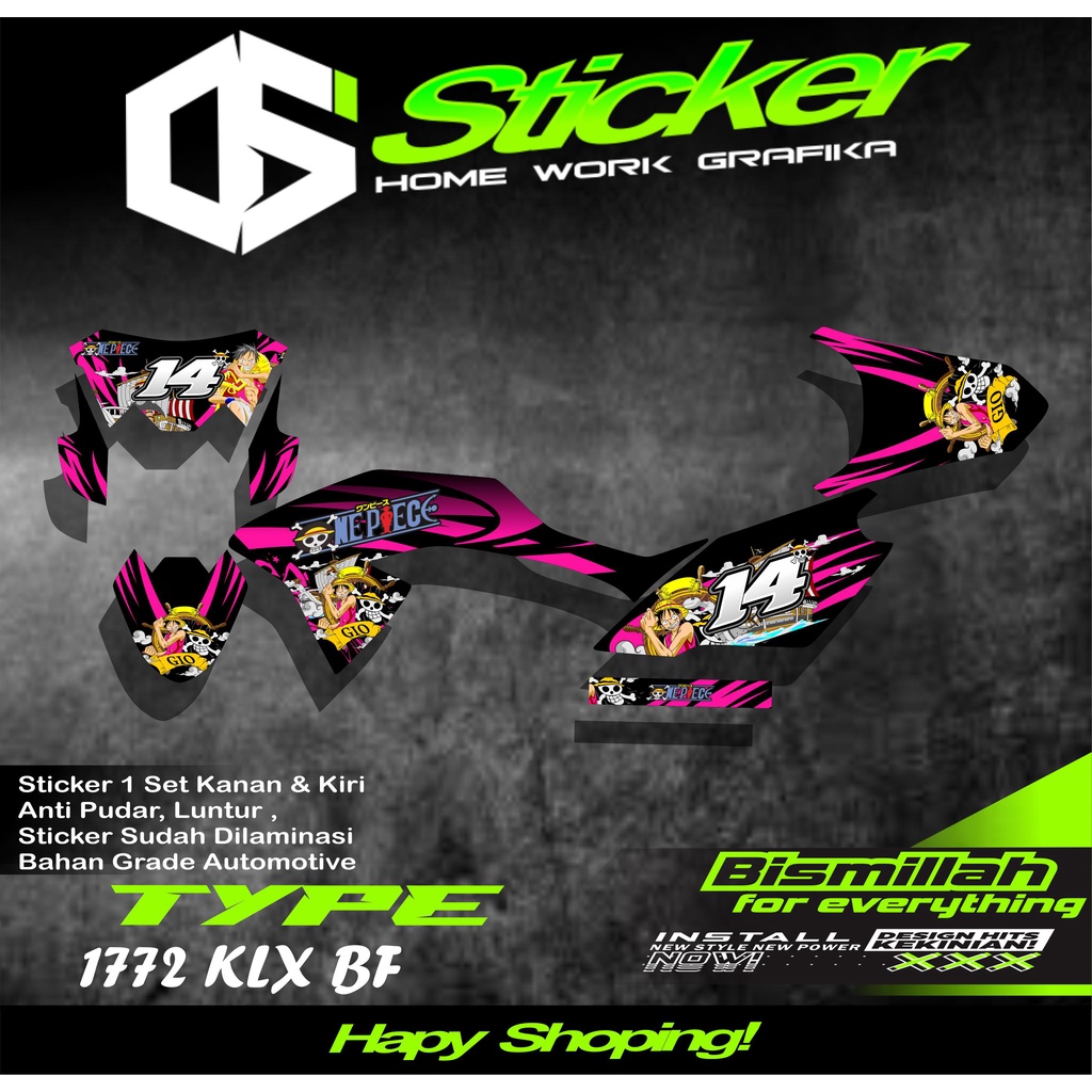 1772 Sticker Striping Motor KLX BF/G/SE List Variasi Motif Anime One Piece Kece