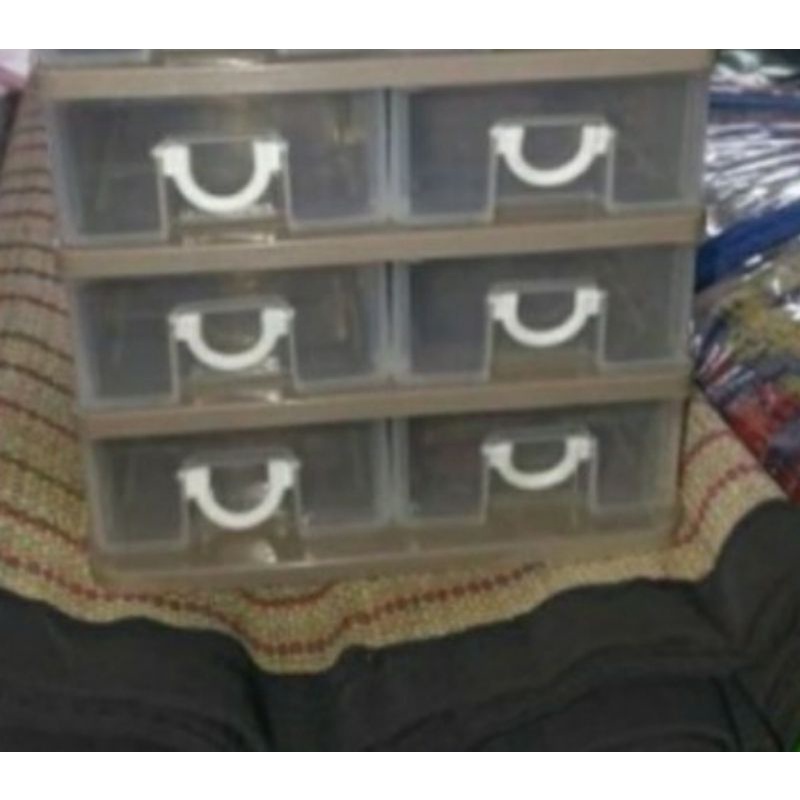 17x14x15 Laci Mini Container 6 Susun Green leaf 7906 S3 Box Container Plastik Shinpo Miniso
