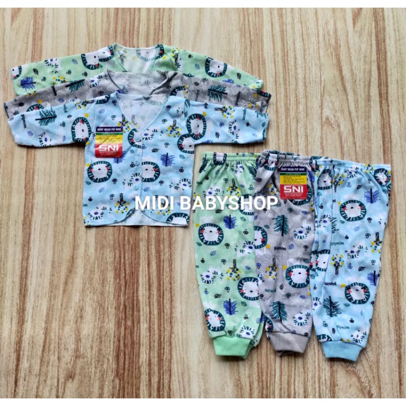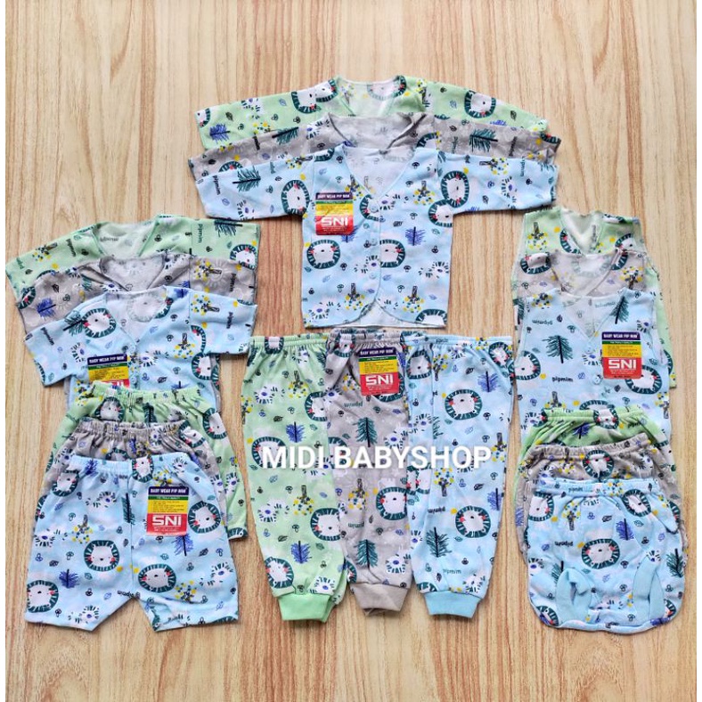 18 Pcs Paket Baju Bayi Celana Bayi Baru lahir Newborn Full Print Pip Mim SNI