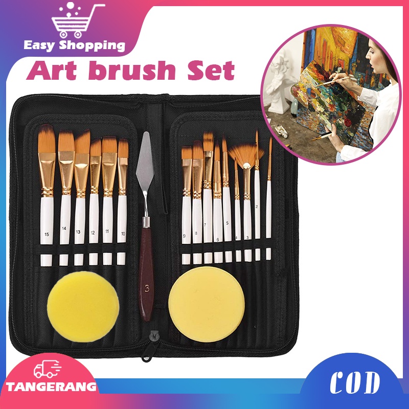 18PCS Alat Lukis Kuas Cat Air Minyak/Kuas Alat Lukis Set/Mix Kuas Lukis Set Lengkap/Art Brush Set