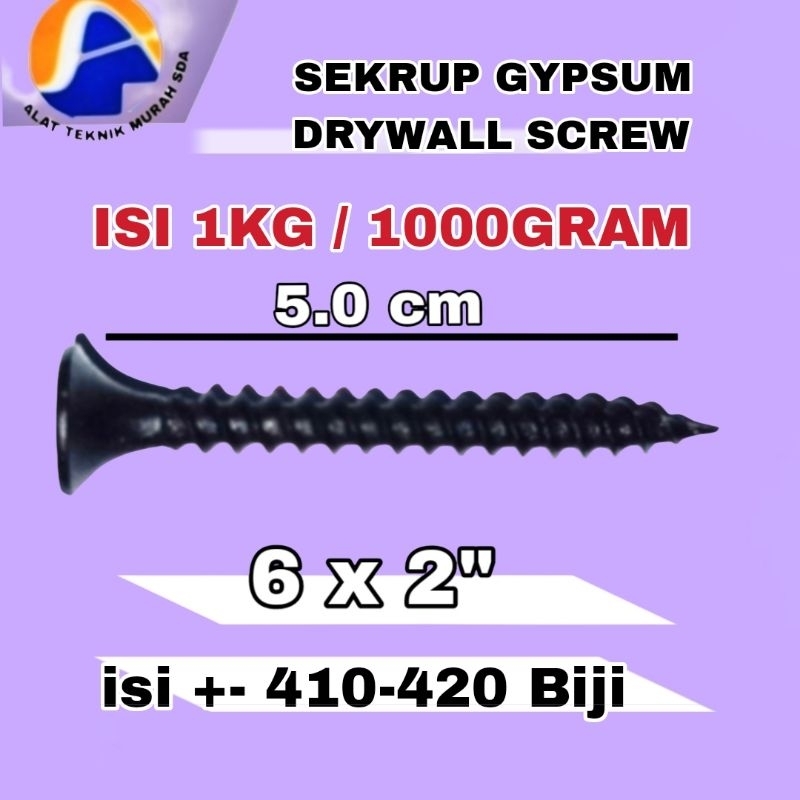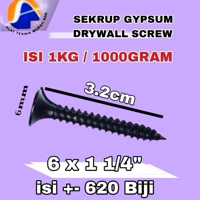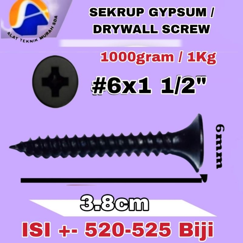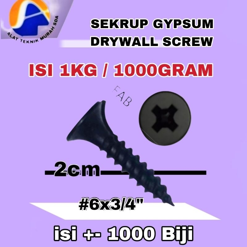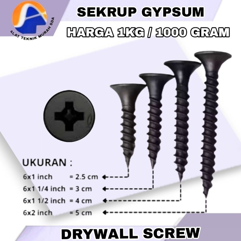 1Kotak 1000gr Sekrup Skrup Gypsum Drywall Screw (3/4") (1") (1 1/4") (1 1/2") (2") Inch Sekrup Skrup Plafon Atap Gypsum Kayu Drywall