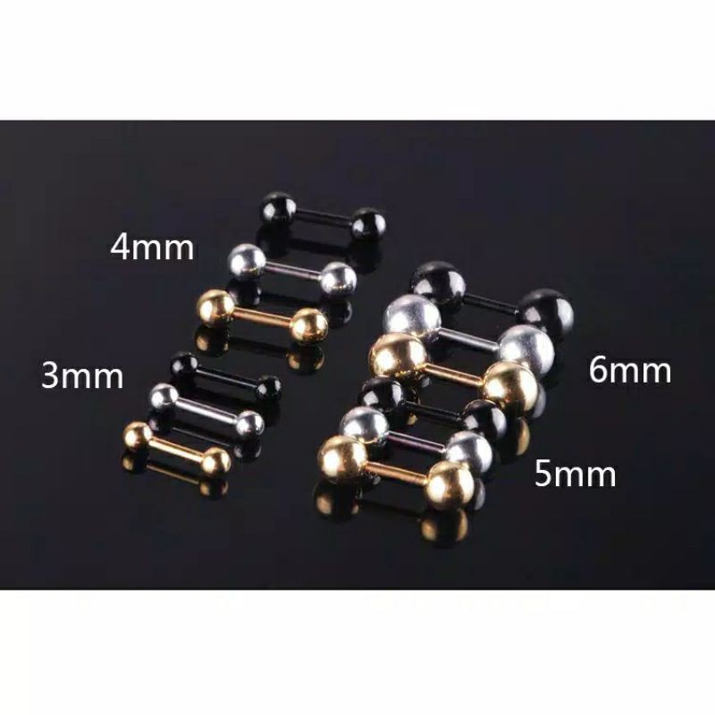 1PCS / 5PCS Anting Telinga Barbel Earring Piercing EarLobe Standart Helix Tragus Stainless Steel 3/4/5mm