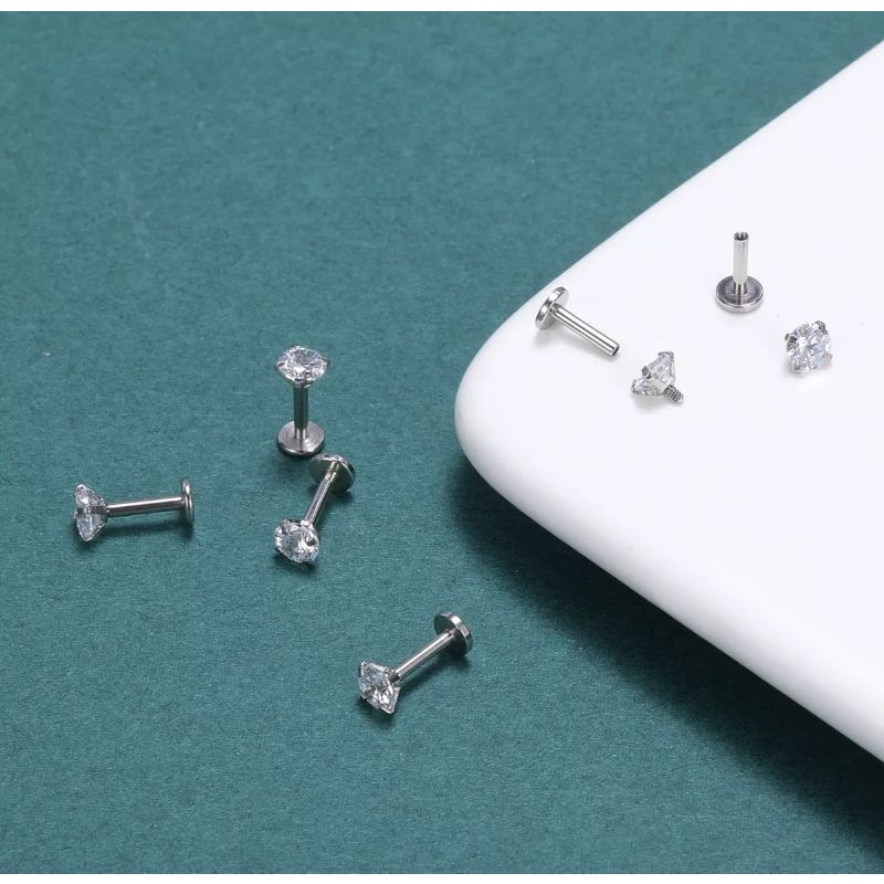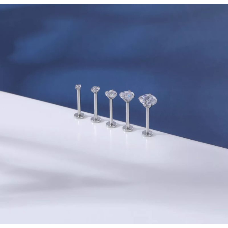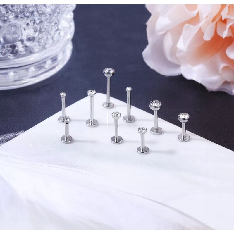 1PCS Anting Labret Screw Lip Piercing Men Women CZ Crystal Ear Cartilage Tragus Helix Piercing 6/8/10mm