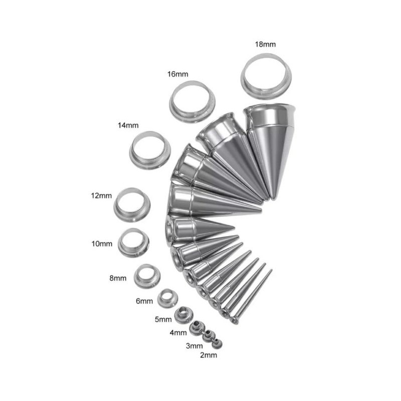 1PCS Set Anting PIERCING TAPPER PLUG TUNNEL Anting EARPLUG STAINLESS STELL SILVER/BLACK 2mm - 20mm