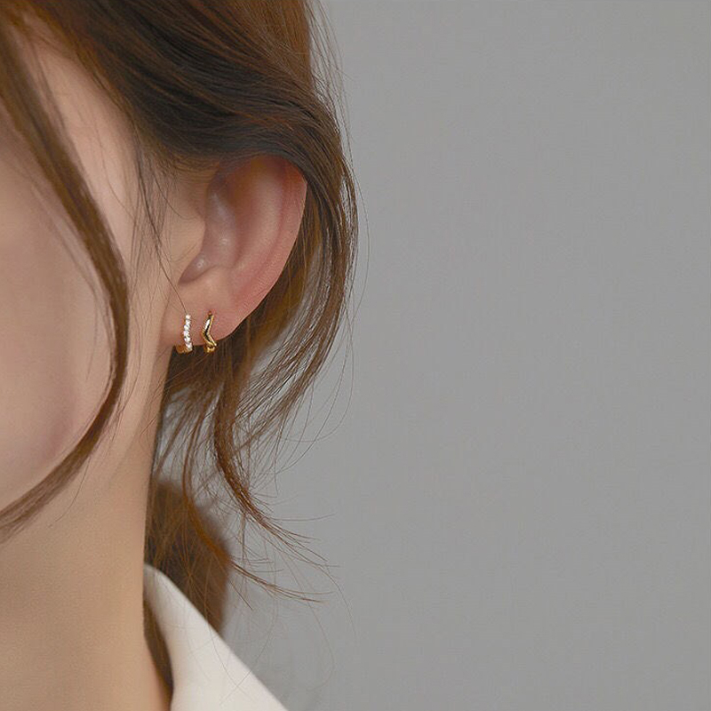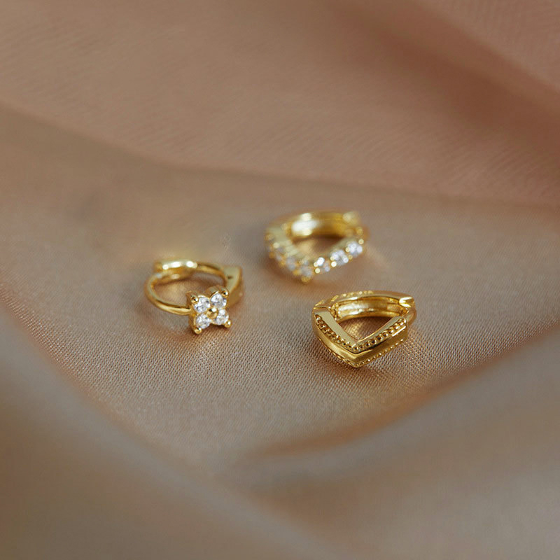 1Pasang Anting Bulat Hoop Zirkon Mini Berlapis Emas 14K - Anting Huggie Anting Tulang Rawan