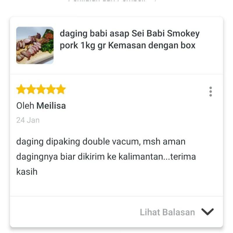 1kg Daging Babi Asap Sei Babi smokey Pork lezat murah