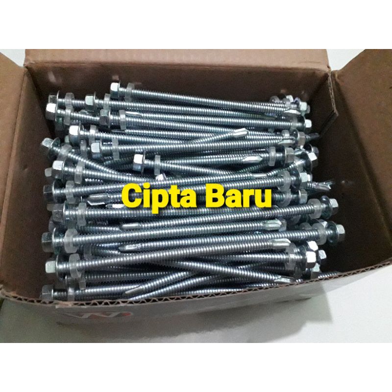 1ktk(150pcs) Baut drilling/ Drilling Screw/ baut hollow/ Baut Baja ringan merk W 12x100 /panjang 10cm