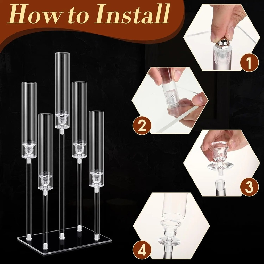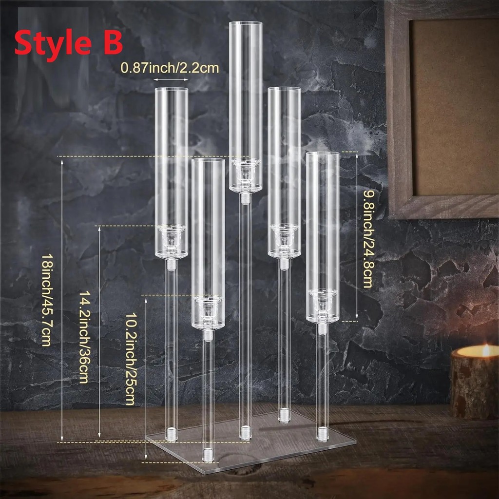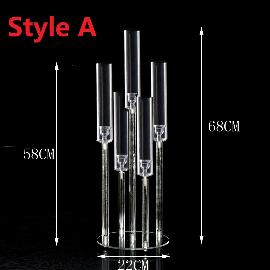 2-10pcs Set Acrylic Candelabra Centerpieces 5 Arm Clear Candelabra Candle Holder Acrylic Taper Candlestick with Rectangular Base