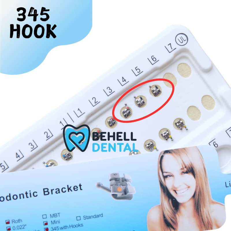 BRACKET BEHEL GIGI PERAWATAN ORTHO METAL ROTH WITH HOOK ON 345 // Kawat Dental Comfort Usa Original // Braket Breket Mim Metalic Perbaikan Gigi Ori Mengkilap . hook 345
