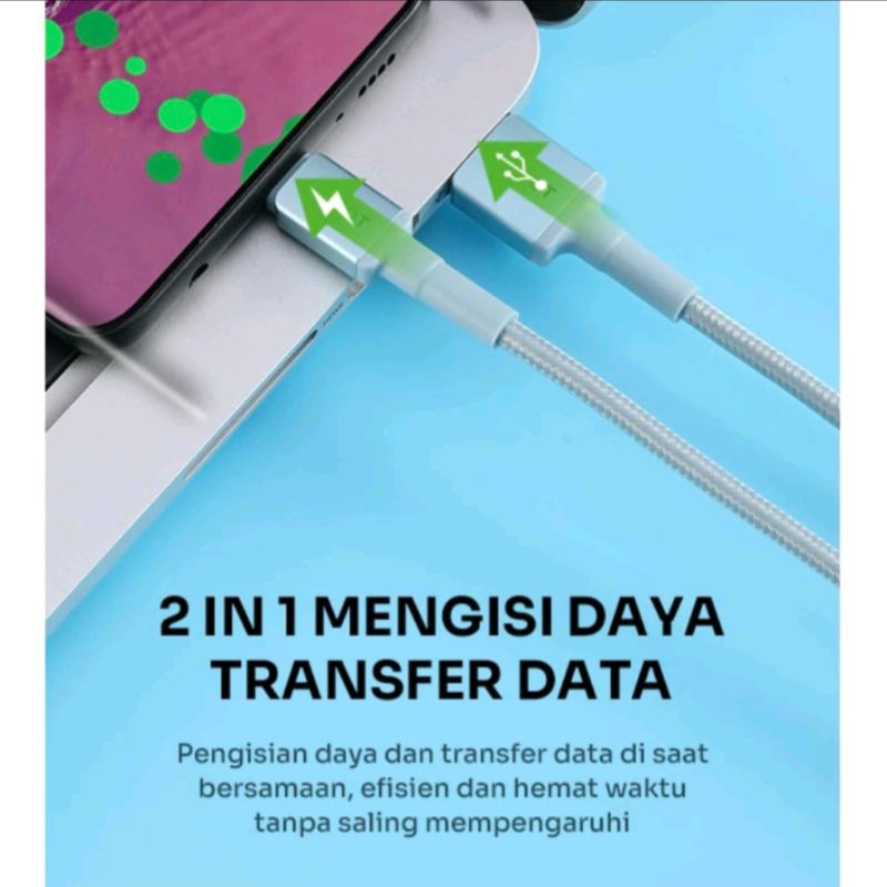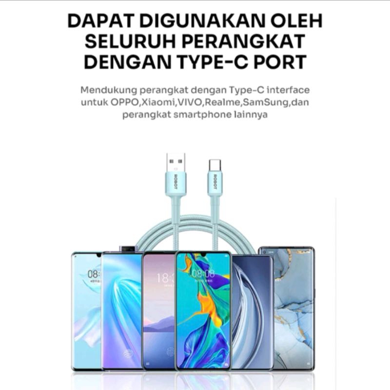 2 METER Kabel data Type C ROBOT Kabel Data Type C Usb Fast Charging 2,4A Fast charging Premium Quality Nylond Braided kabel cas type c