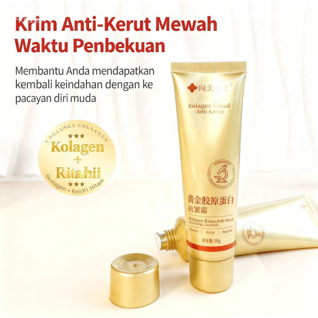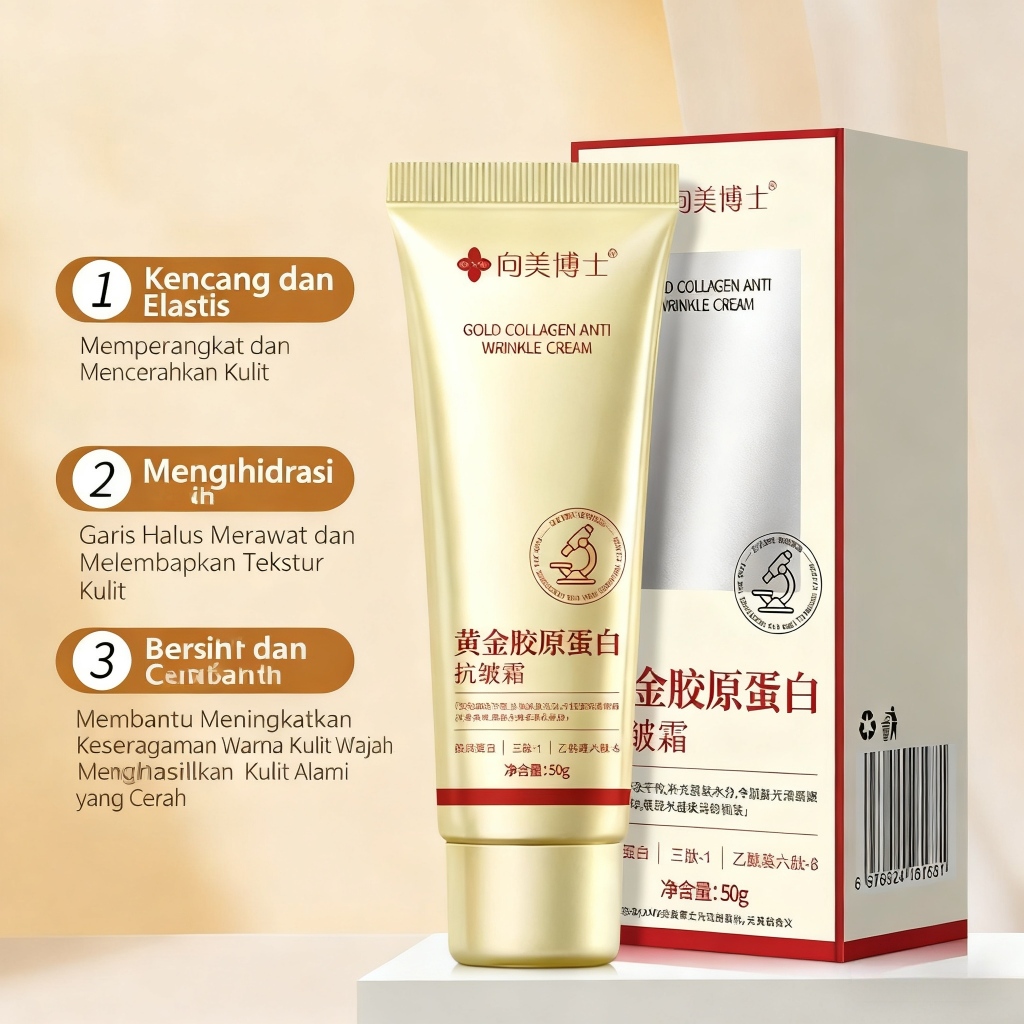Krim Kolagen Emas 50g Krim Anti Kerut & Anti Penuaan – Melembabkan, Mengencangkan & Mencerahkan Kulit