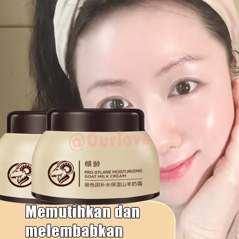 Goat Milk Moisturizer Cream Anti-Aging Pemutih Glowing Krim Melembabkan Wajah Kering Dan Kusam 100% Orisinal Penghidrasi Wajah Krim Susu Kambing Pelembab Moisturizer Goat Milk Cream Memperbaiki Penghalang Kulit
