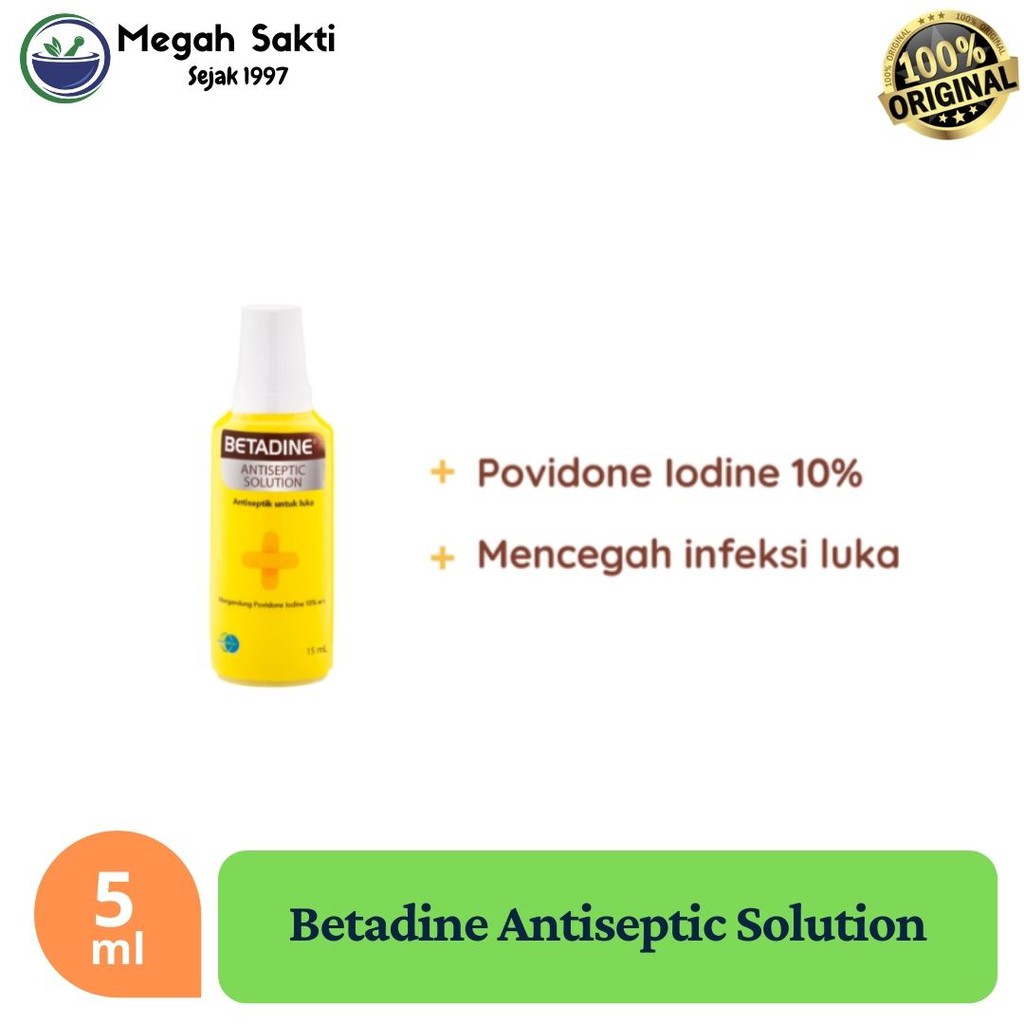 Megah Sakti - Betadine Antiseptic Solution 5 mL | Iodine Povidone Obat Luka Jatuh Lecet Gores