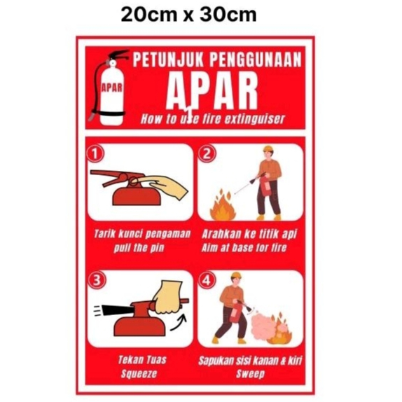 Stiker penggunaan apar UKURAN BESAR Sticker sign penggunaan apar untuk gedung stiker pedoman penggunaan tabung apar lithium apar Co2 apar powder apar kitchen room