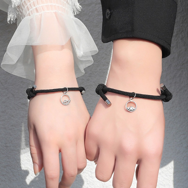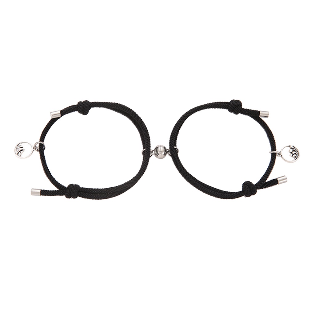 2 pcs gelang magnet/1 Pasang Gelang Couple Magnet Gelang Tali Couple Magnet Attract persahabatan Tangan Wanita Bracelets hitam