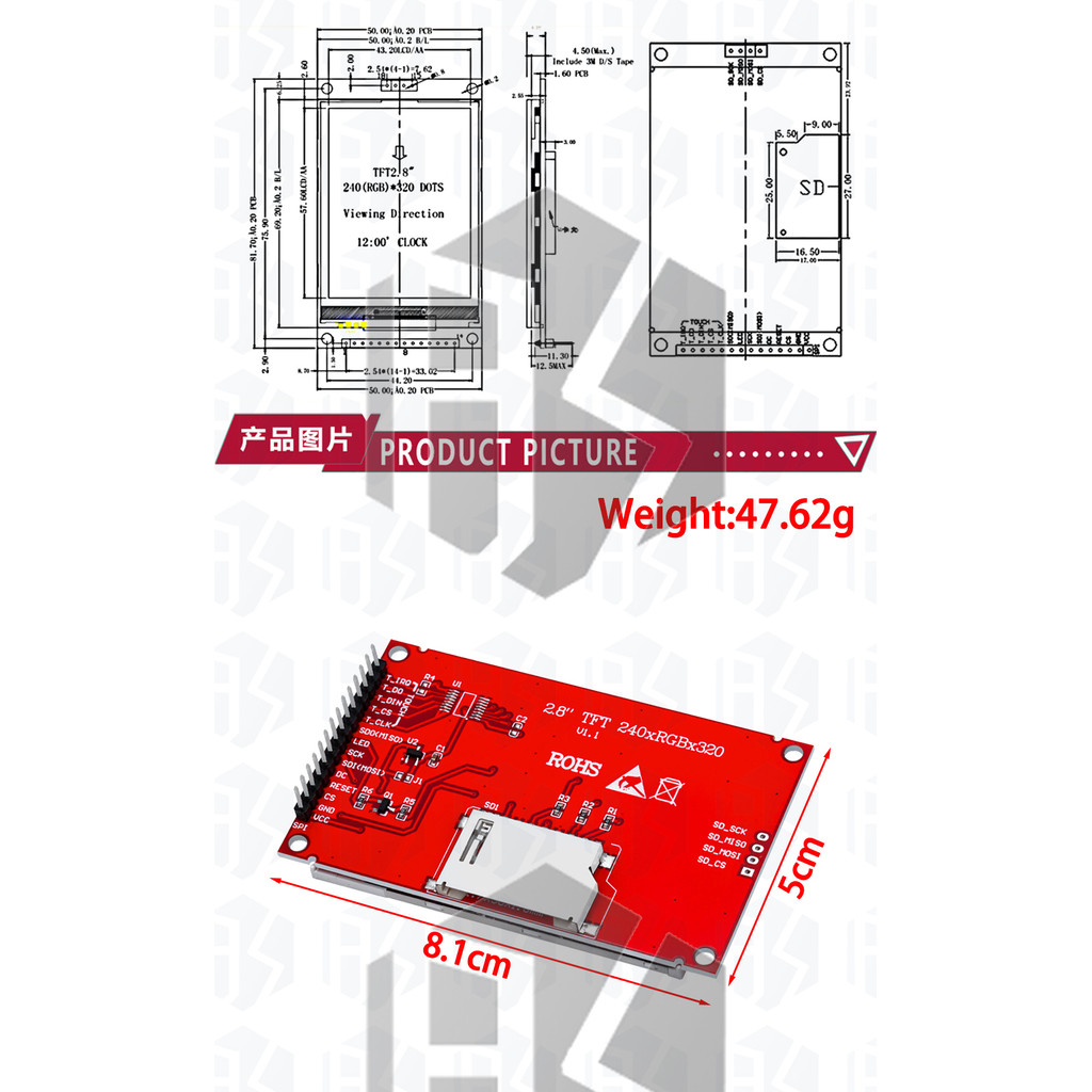 2.8" 240x320 SPI TFT LCD Serial Port Module With PCB Adapter Micro SD ILI9341 / ST7789V 5V/3.3V 2.8 in LED say For Arduino