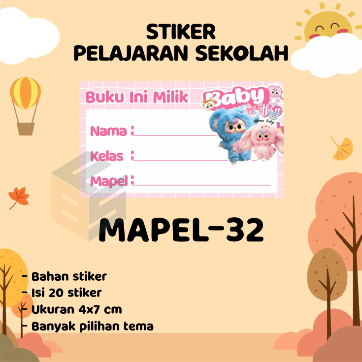 20 Stiker Mapel - Label Buku Pelajaran Sekolah - Stiker mata pelajaran