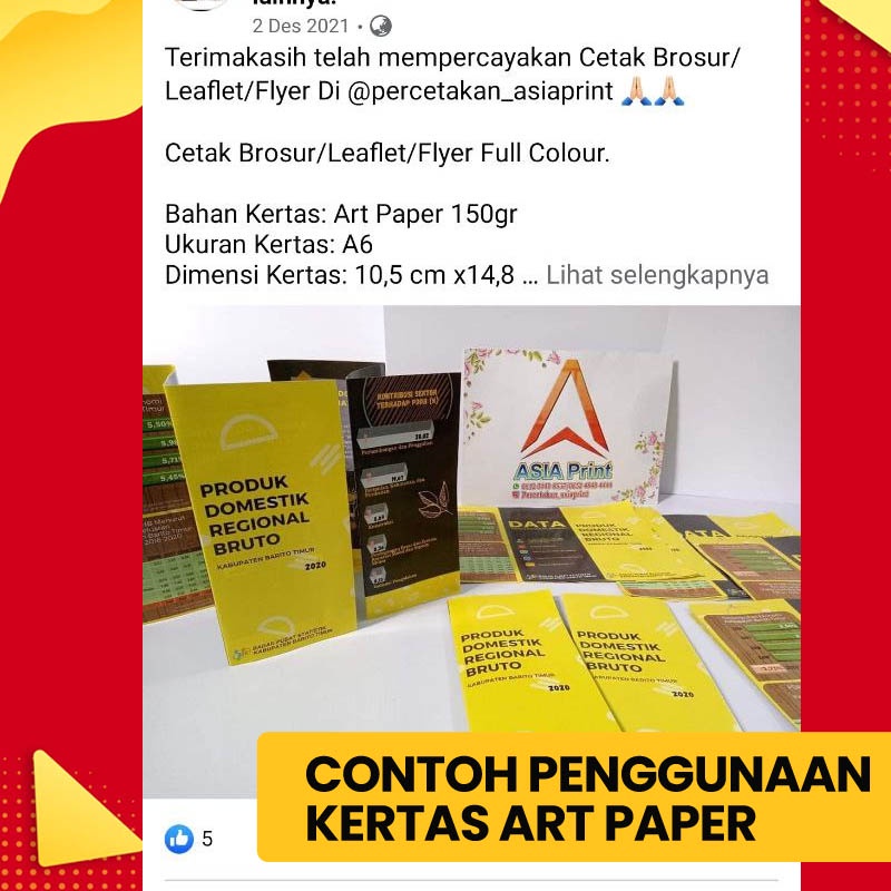 200 Lembar Kertas Art Paper Gramasi 120 Gsm F4 & A4 Artpaper Glossy 2 Dua Sisi - AP120