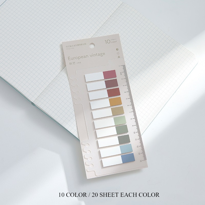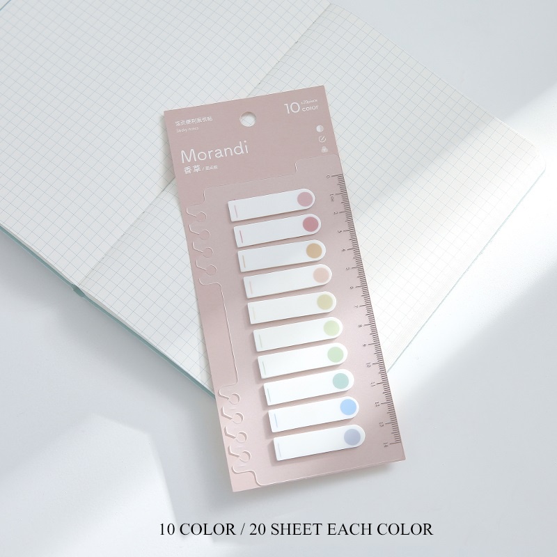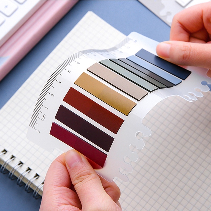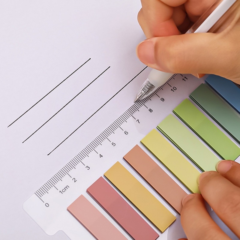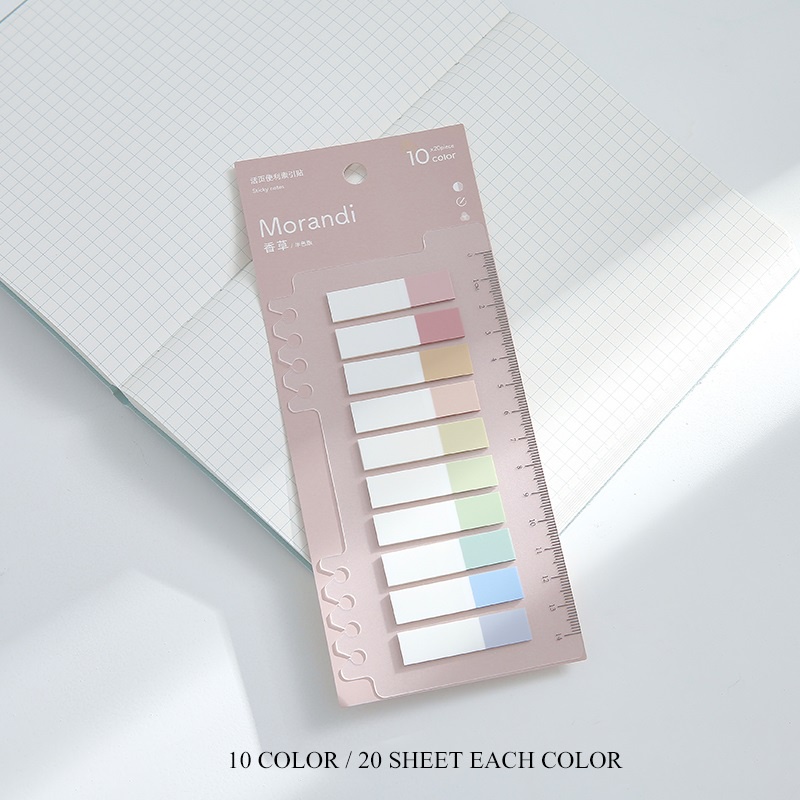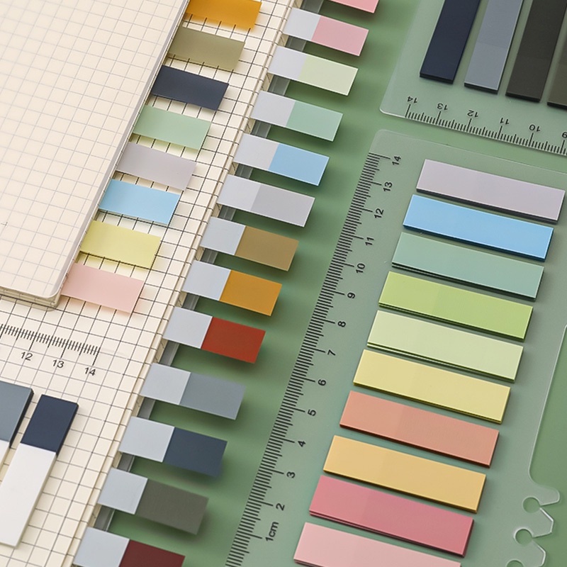 200 Lembar Morandi Sticky Note Plastik Warna-Warni dengan Penggaris