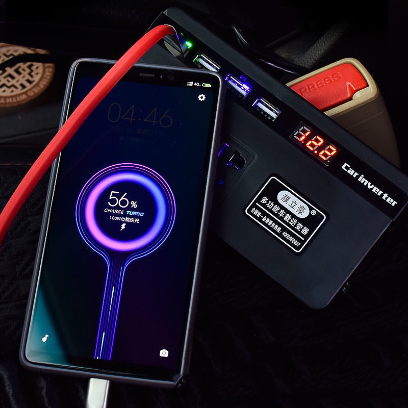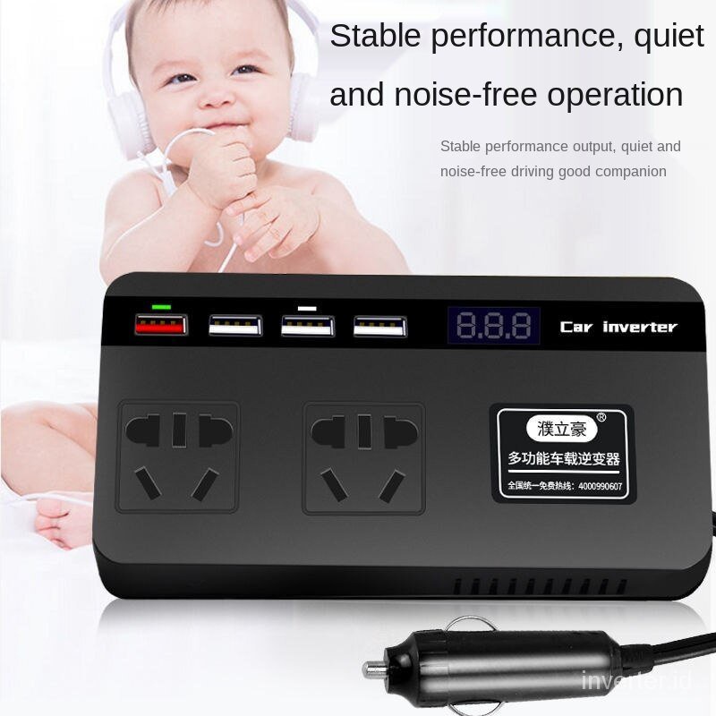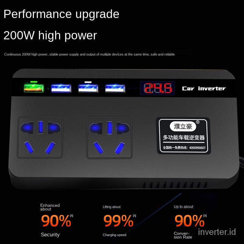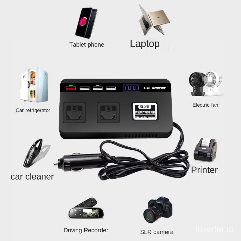 200W Power Inverter Mobil 12V / 24V Modul Inverter DC Ke AC 4 USB Port Dengan Tampilan Digital Dan Cahaya Malam Kecil