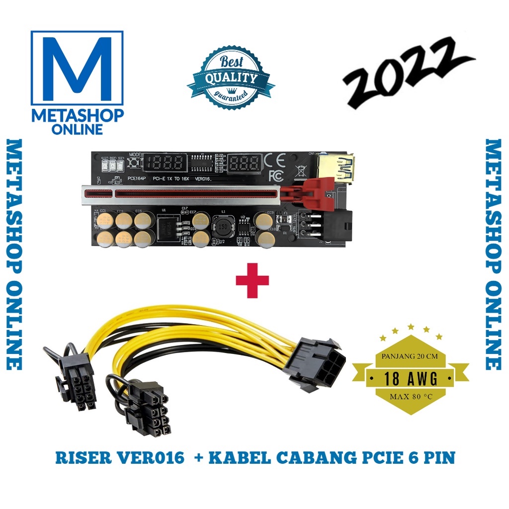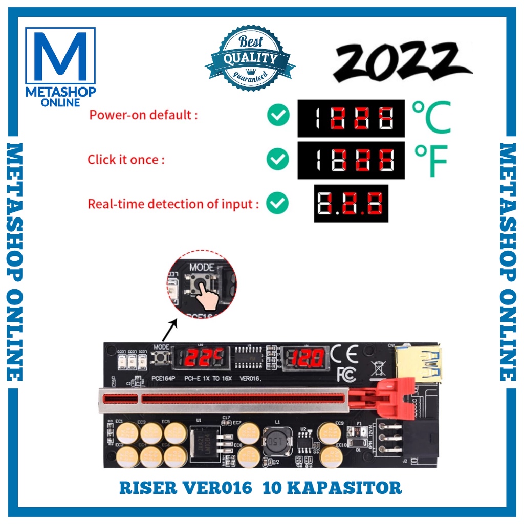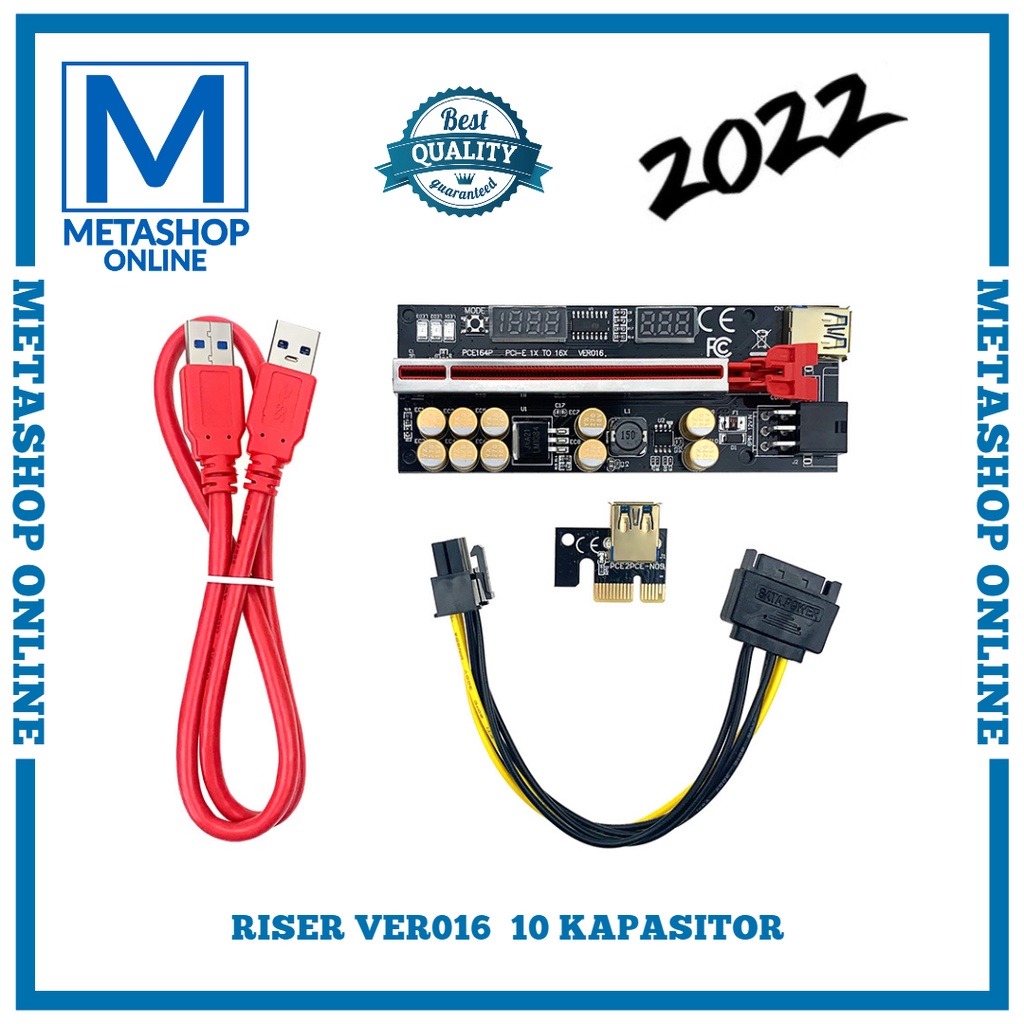 2022 PCIE RISER VGA VER016 Gold Plated VER 016 10 CAPASITOR LED GPU
